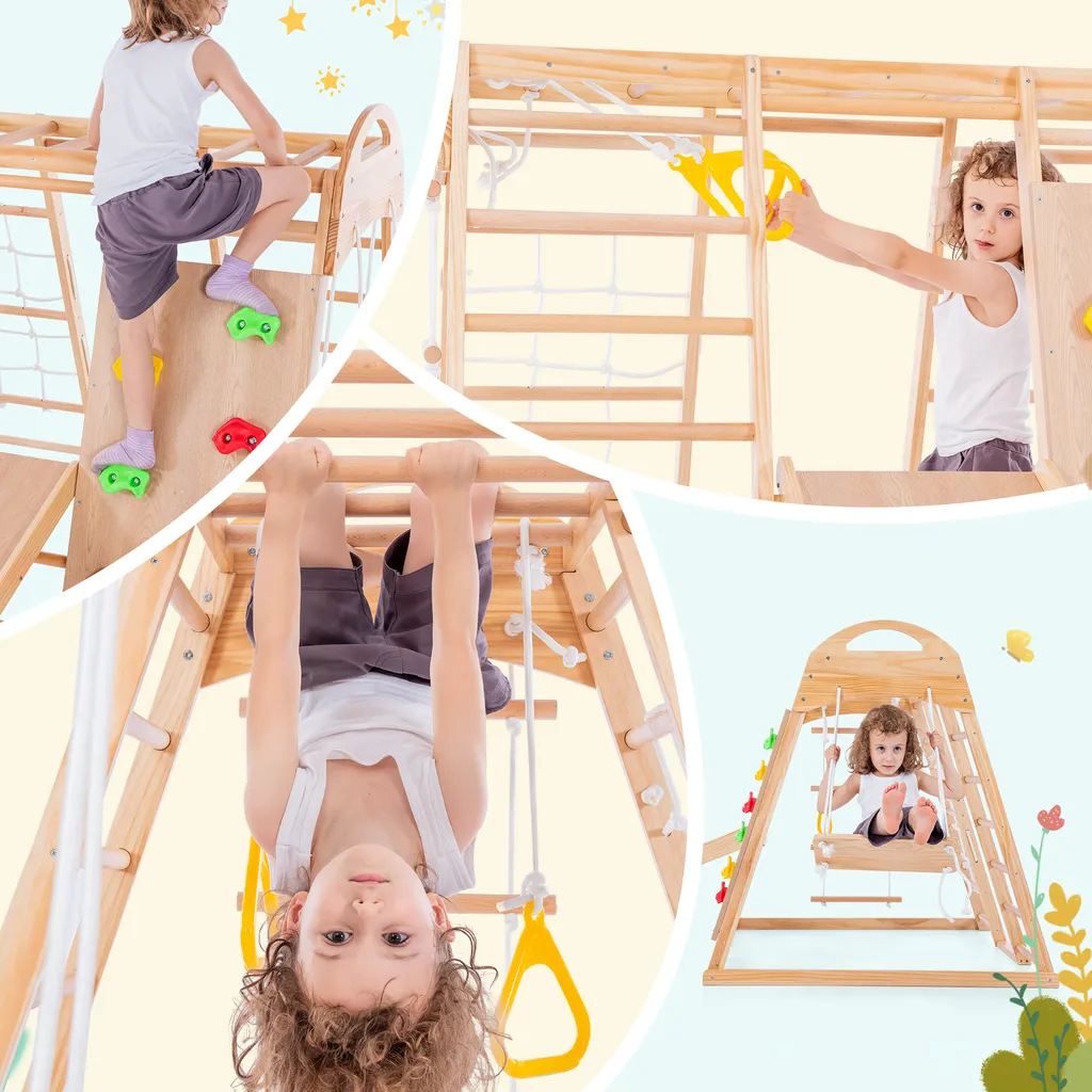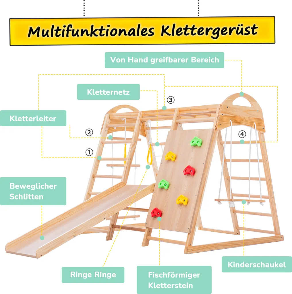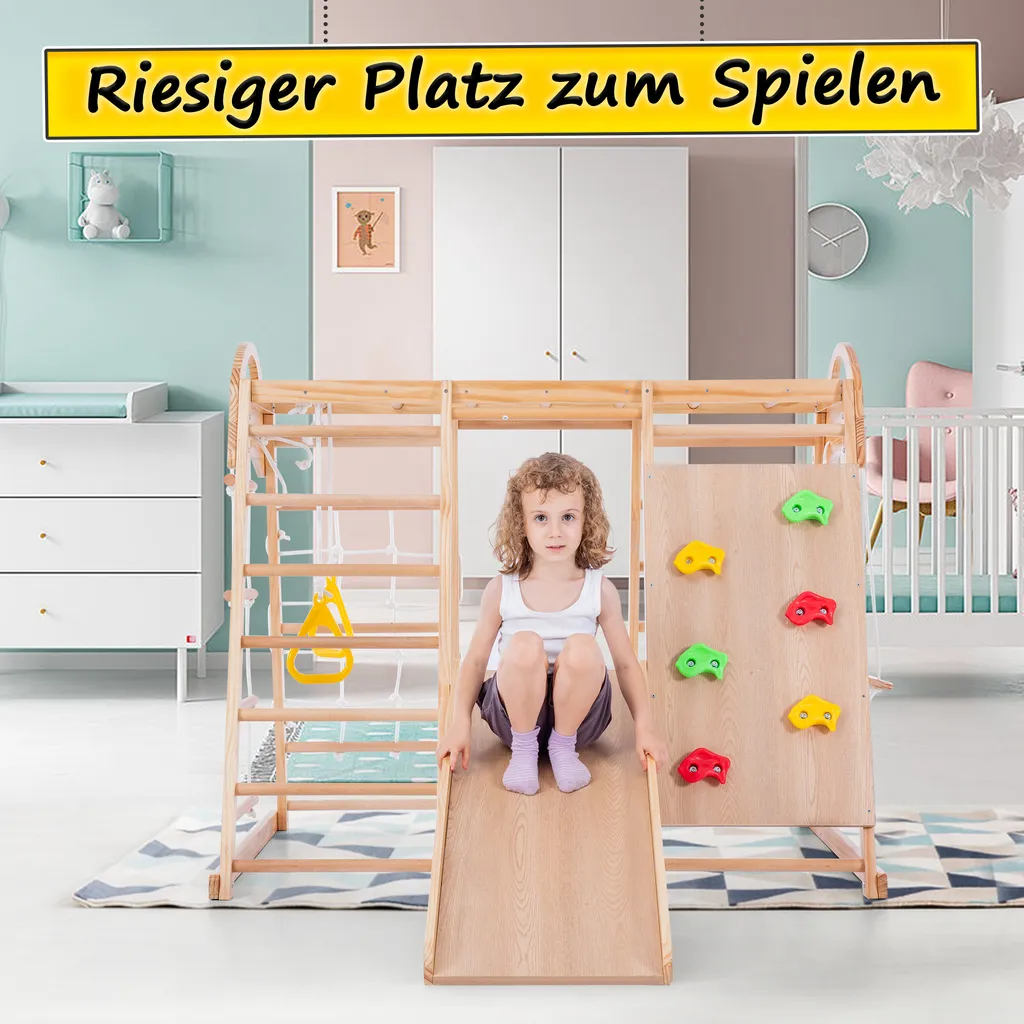 7in1 Klettergerüst Indoor, Outdoor Kletterwand Mit Schaukel Kletterleiter Rutsche Klettersteig Ein Netz Zum Klettern Ringe, Multifunktion Klettergerüste Für Kinder Ab 3 Jahre