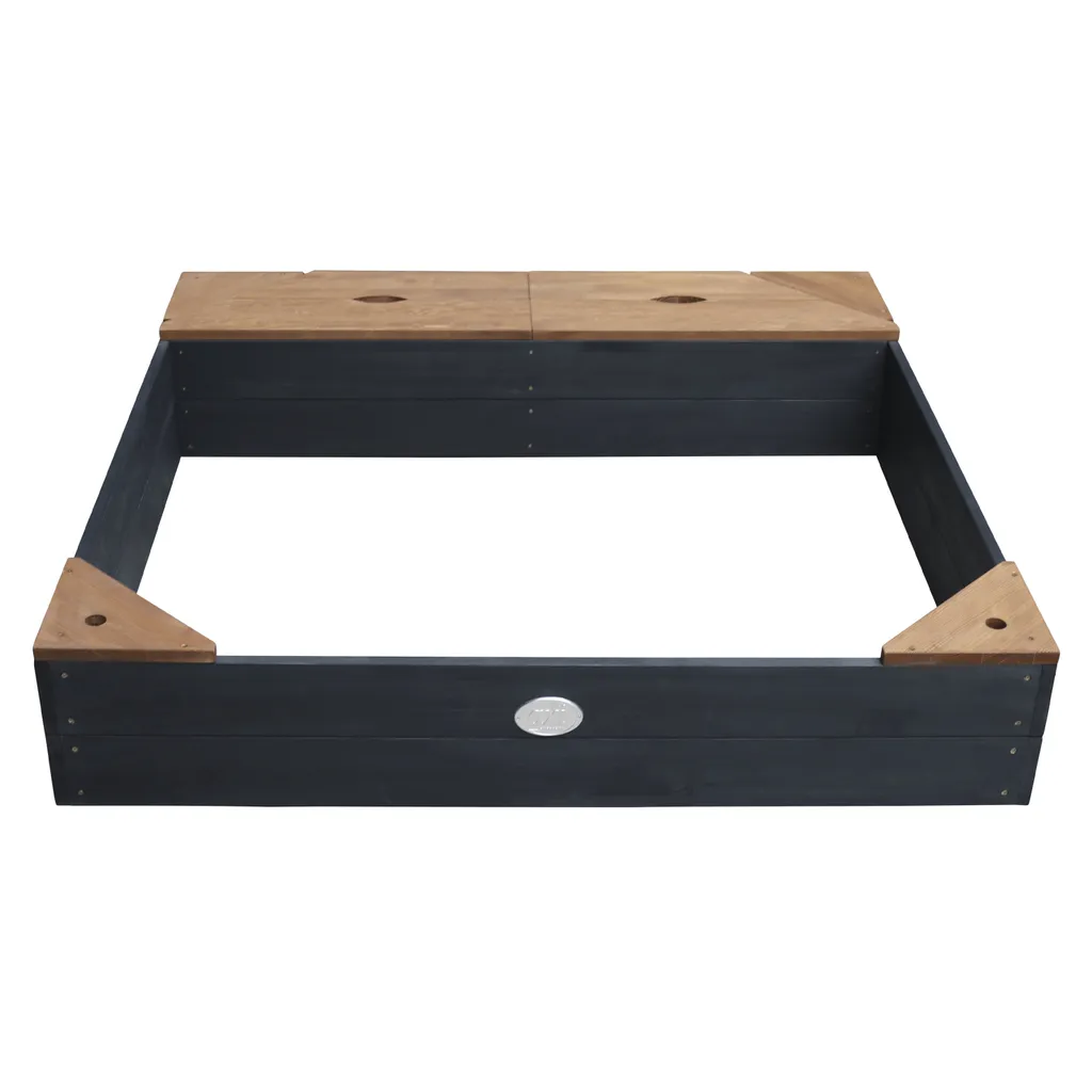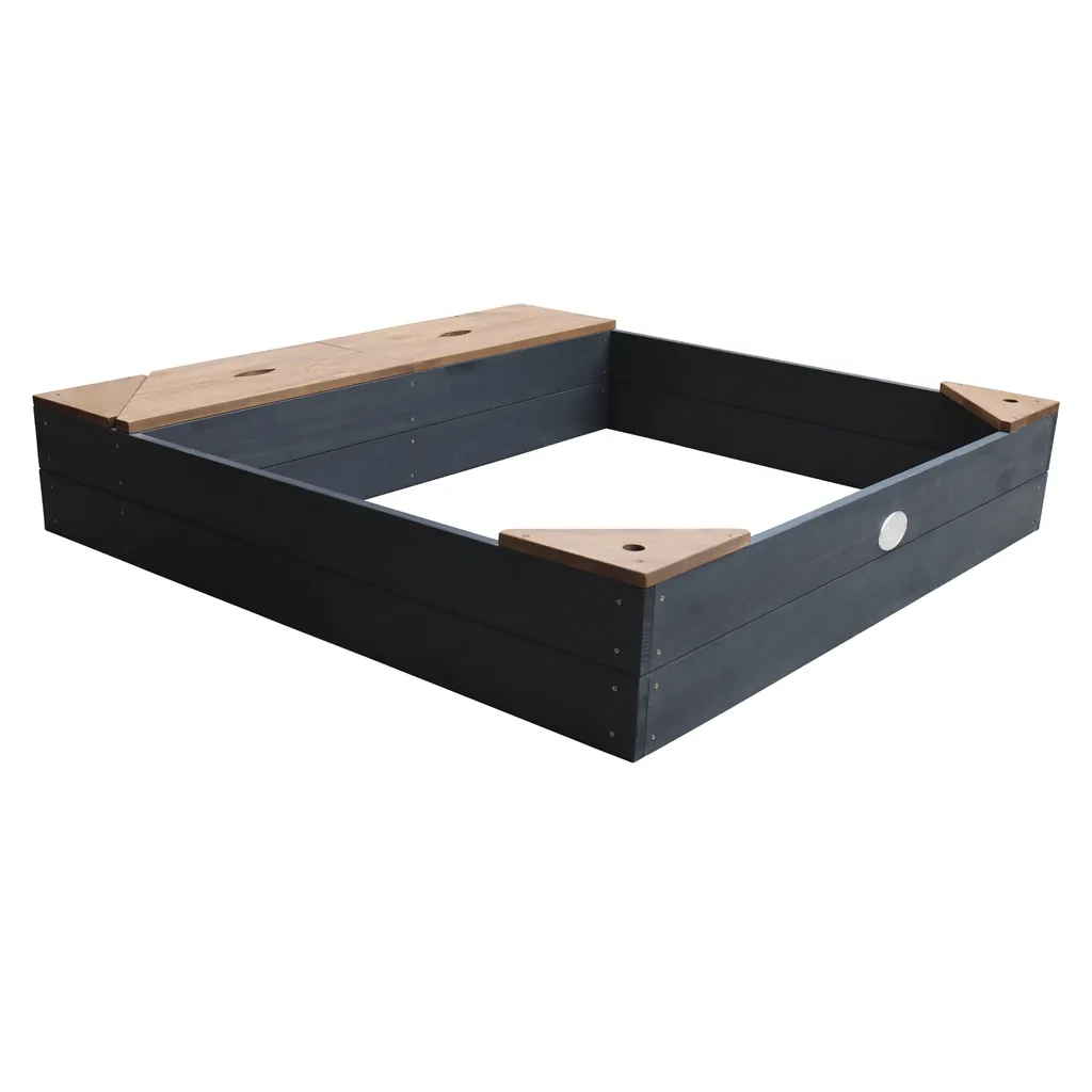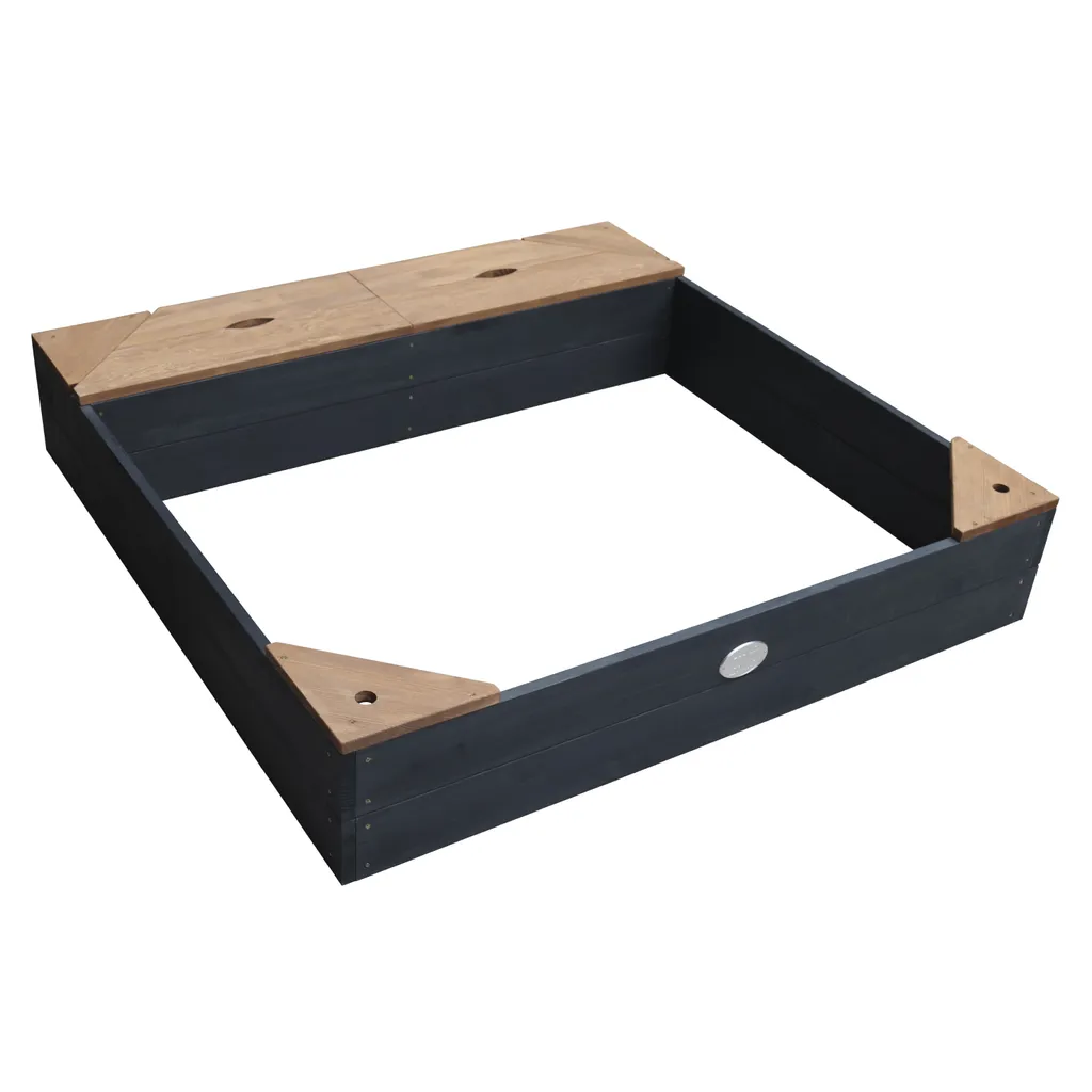 AXI Sandkasten Amy Aus Holz Mit Abdeckplane In Anthrazit & Braun | Sand Kasten Mit Abdeckung Für Kinder Mit Sitzbank, Sitzecken & Stauraum | 115 X 115 Cm