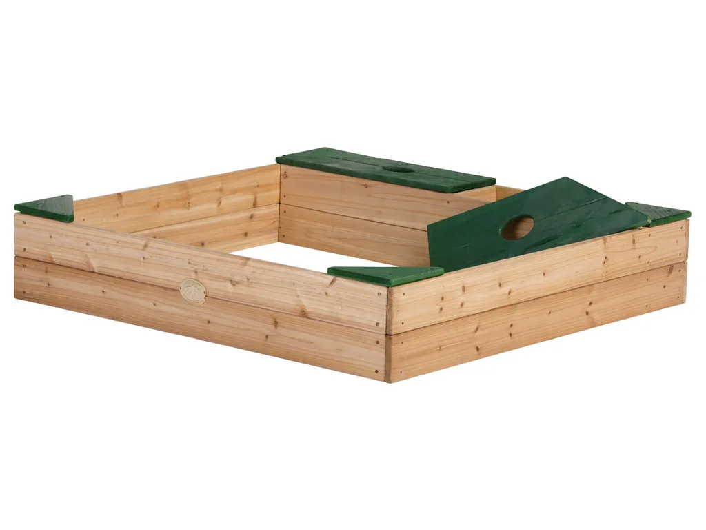 AXI Sandkasten Amy Aus Holz Mit Abdeckplane In Braun & Grün | Sand Kasten Mit Abdeckung Für Kinder Mit Sitzbank, Sitzecken & Stauraum | 115 X 115 Cm