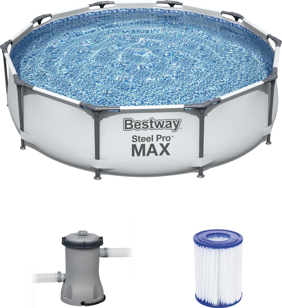 Bestway 56408 Rund Aufstellpool Stahl Pro Max 305×76 CmGestalten: Rund, Maße: 3 – 3,99 M, Filterpumpe: 58381
