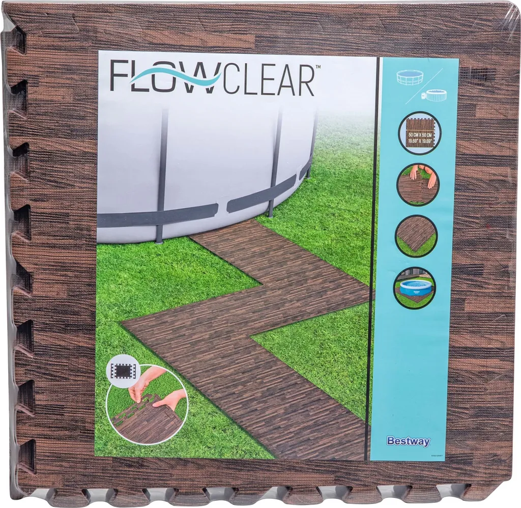 Bestway® Flowclear™ Pool-Bodenschutzfliesen Set, 12 Stück á 50 X 50 Cm, Holz-Optik (Palisander)