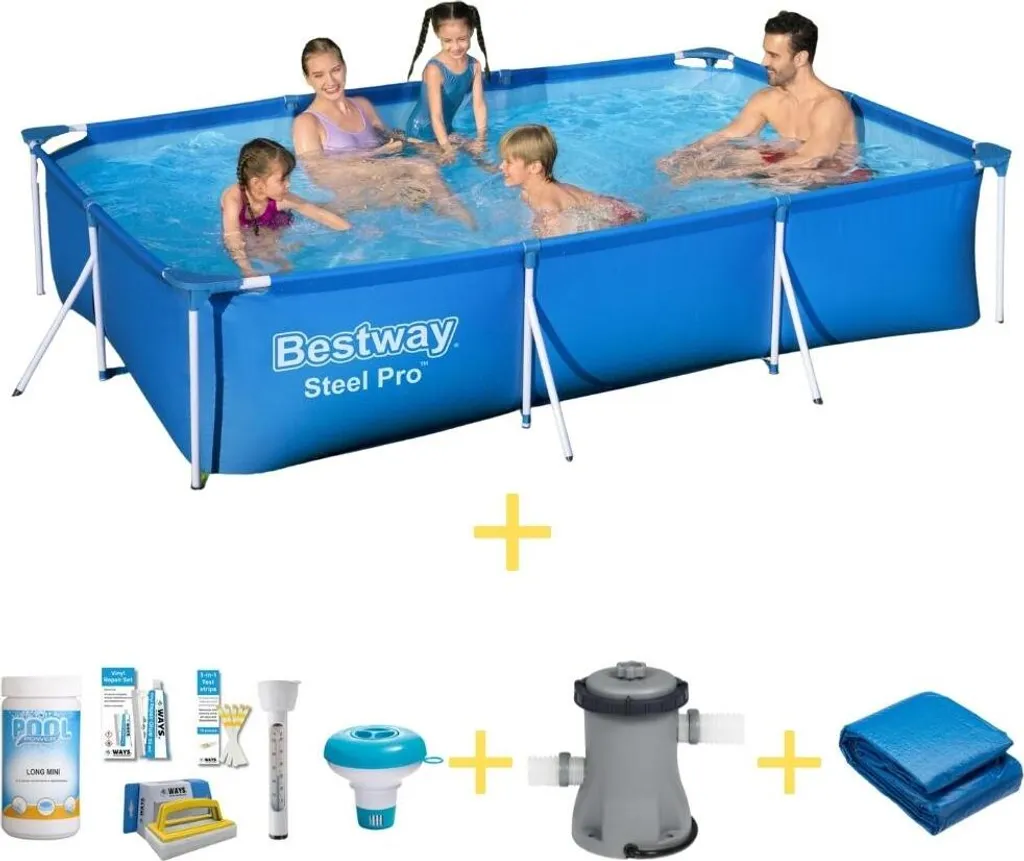 Bestway Pool – Steel Pro – 300 X 201 X 66 Cm – Inklusive WAYS Wartungspaket, Filterpumpe & Bodenplane