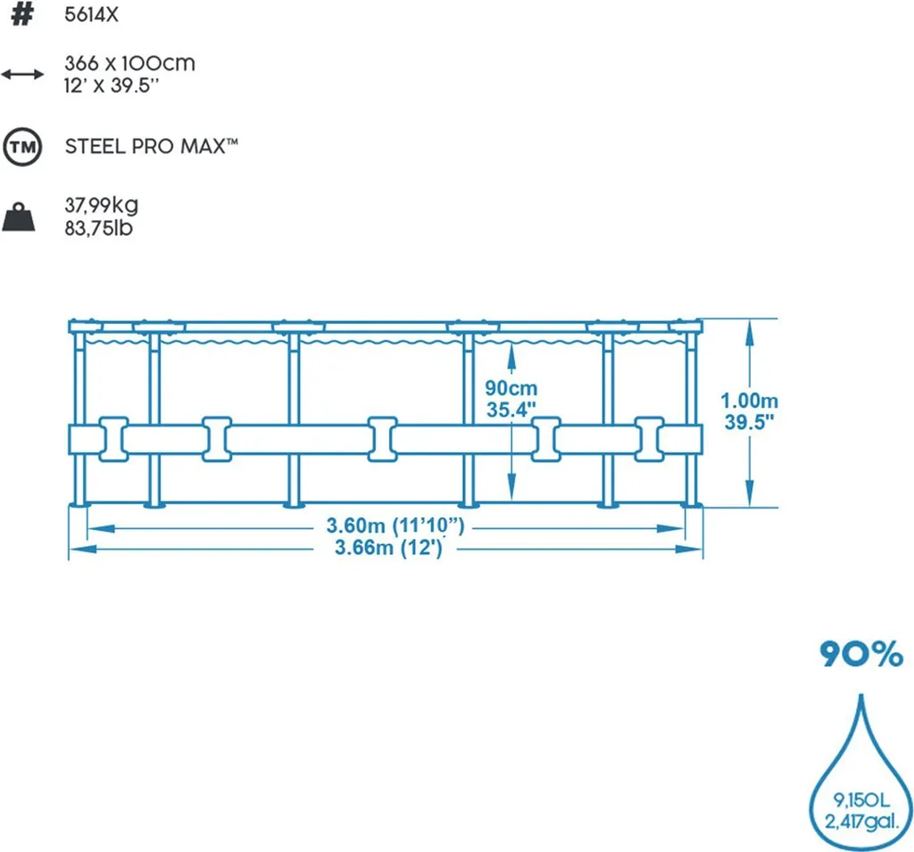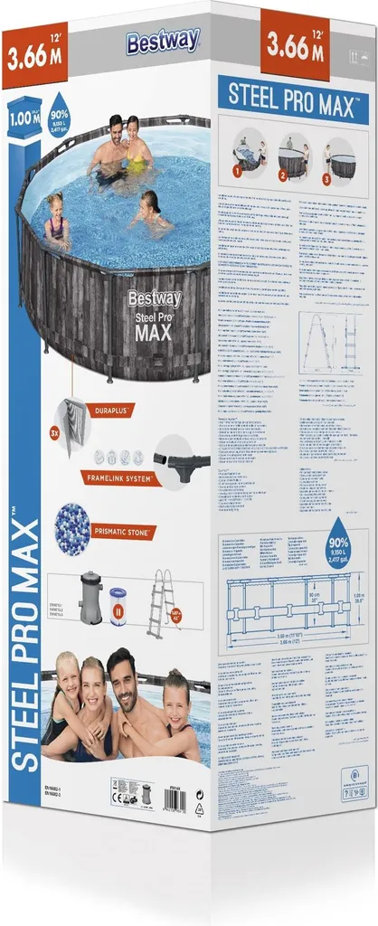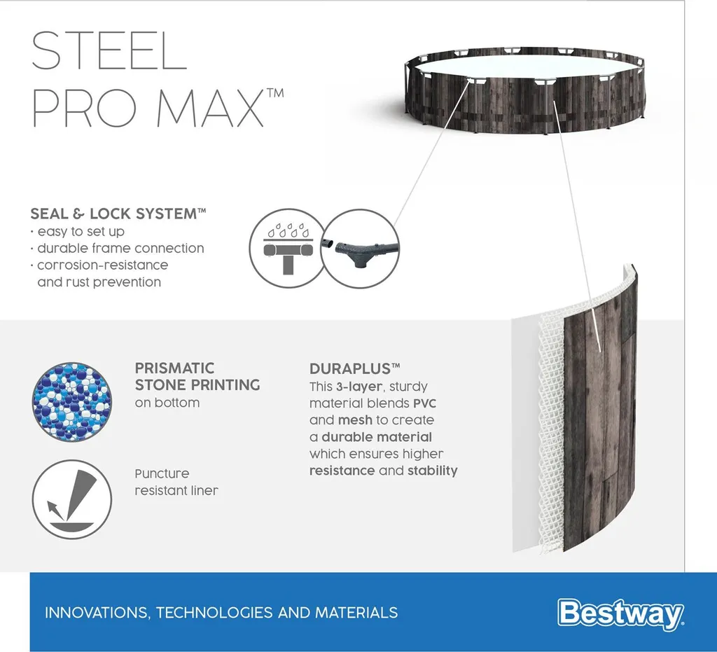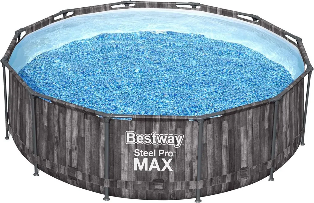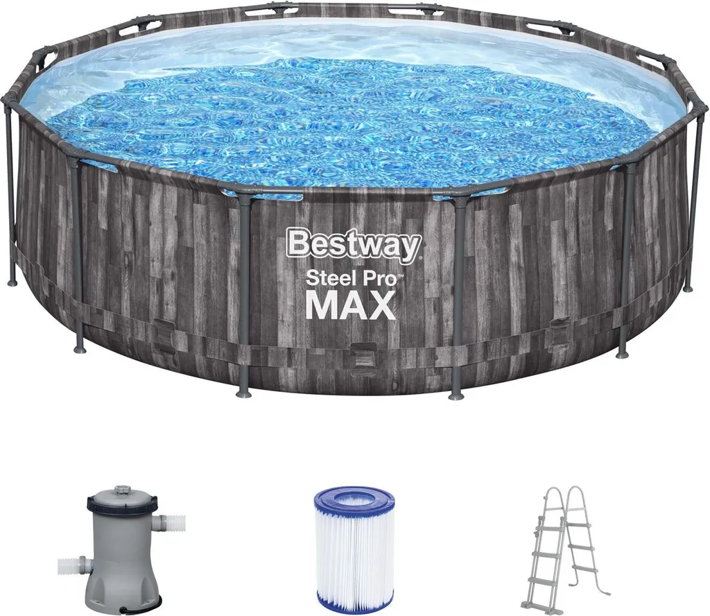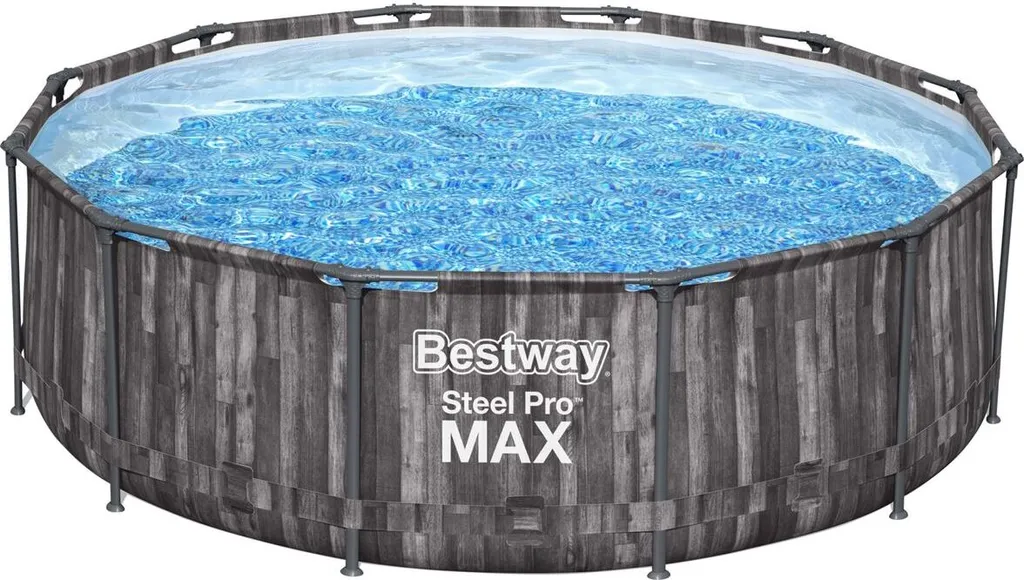 Bestway® Steel Pro MAX™ Frame Pool-Set Mit Filterpumpe Ø 366 X 100 Cm, Holz-Optik (Mooreiche), Rund