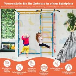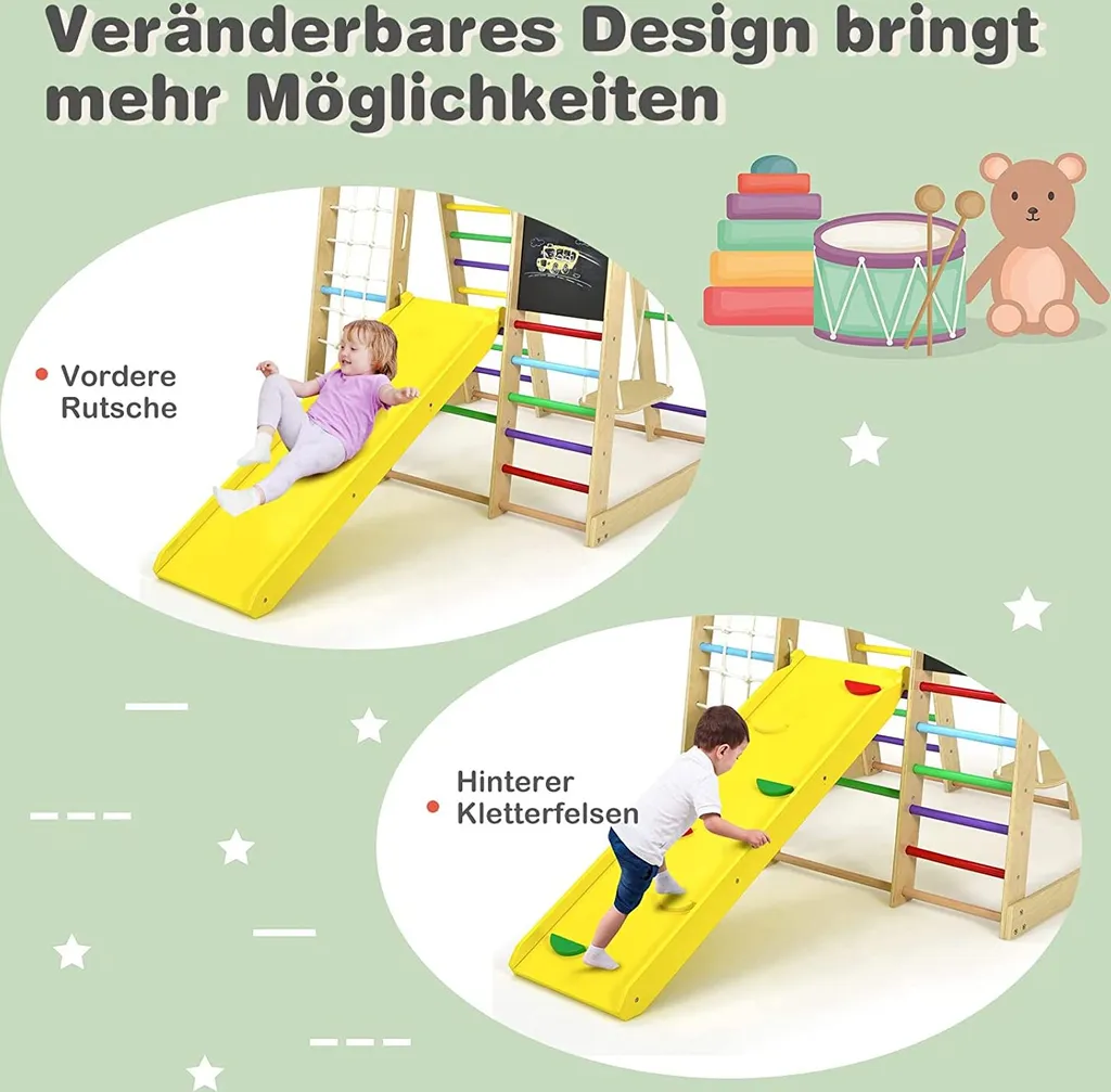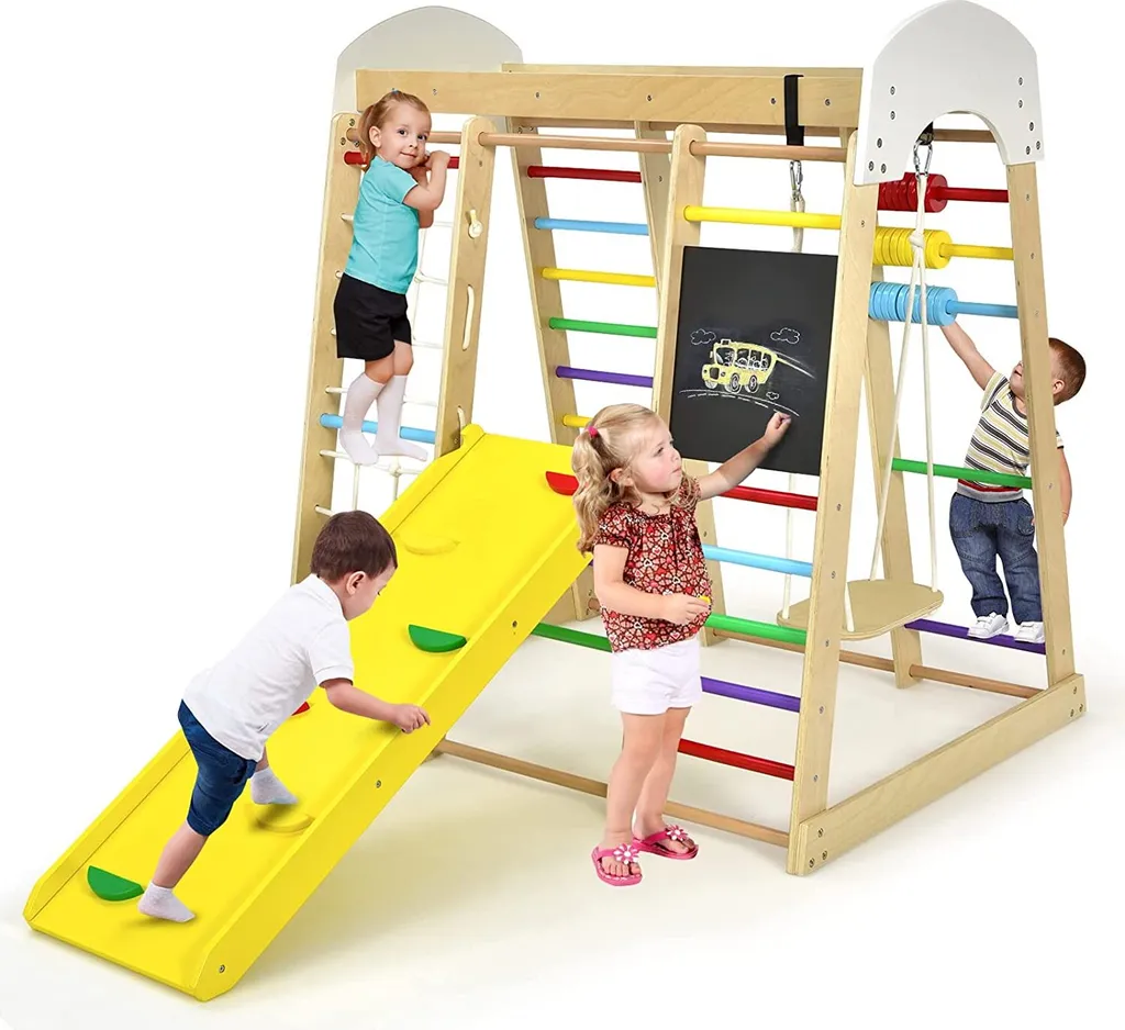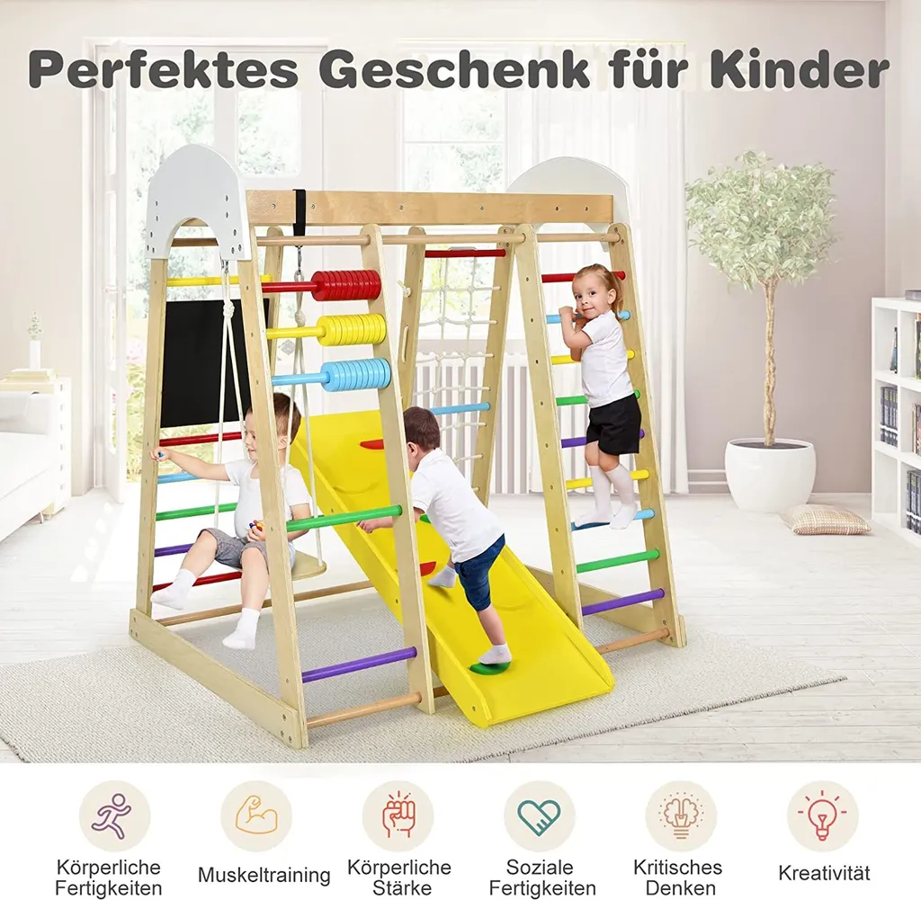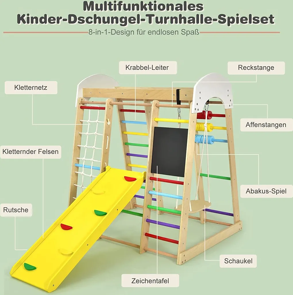 COSTWAY 8 In 1 Kletterspielzeug Set, Inkl. Leiter Rutsche Schaukel Klettergerüst Kletternetz Krabbelleiter Abakus Und Zeichentafel Für Kleinkinder Ab 3 Jahren (Bunt)