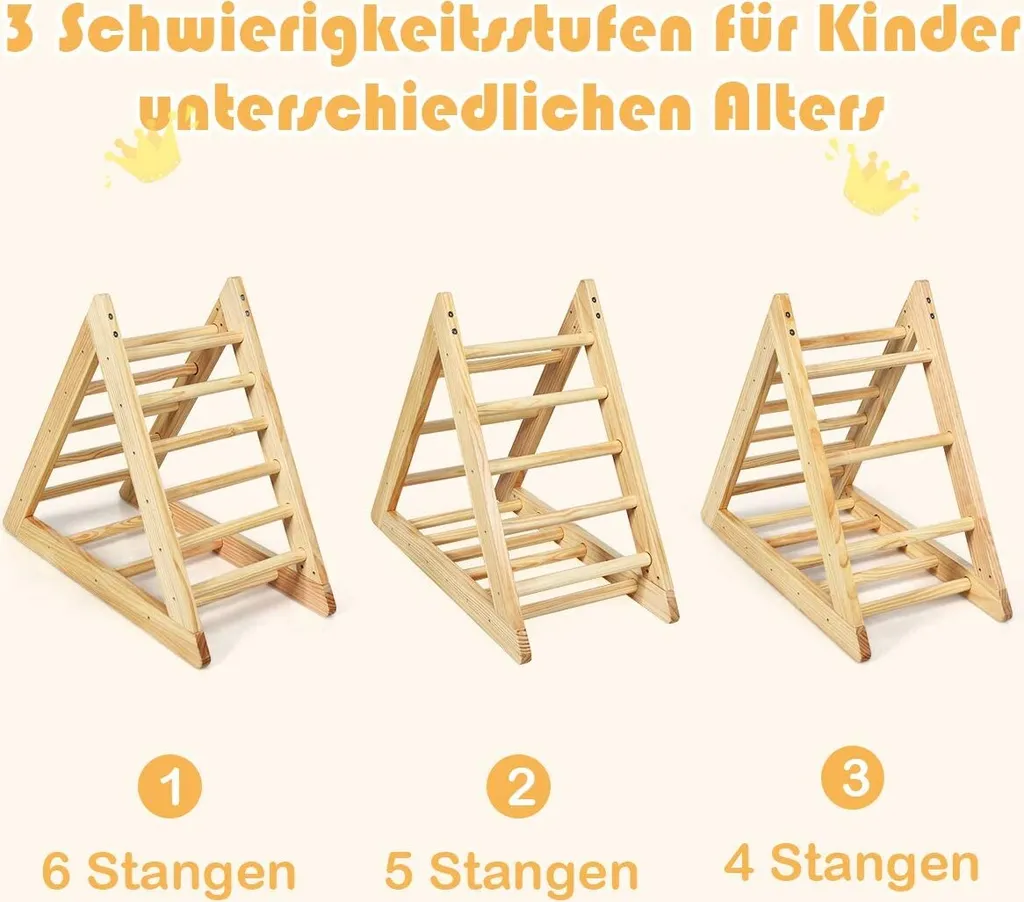 COSTWAY Kletterdreieck Aus Holz, Klettergeruest Fuer Kleinkinder Ab 3 Jahren, Zur Entwicklung Grobmotorischer Faehigkeiten, Natur