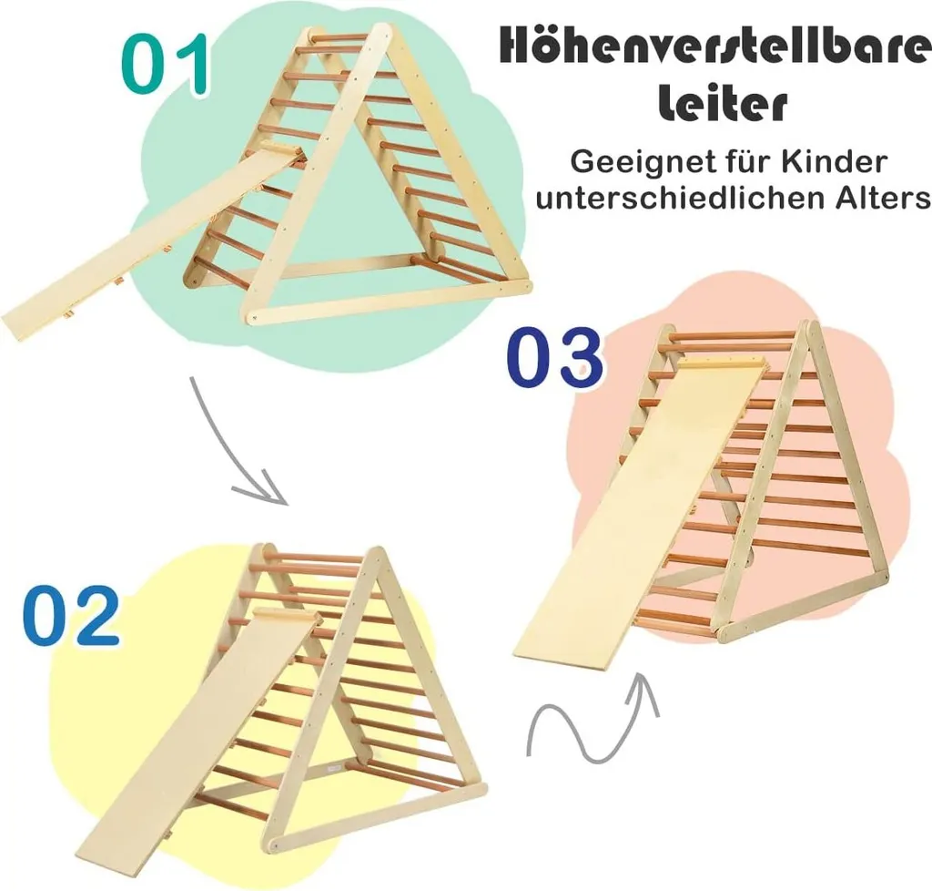 COSTWAY Kletterdreieck Klappbar, Klettergerüst Mit Leiter Aus Holz, Sprossendreieck Zur Entwicklung Grobmotorischer Fähigkeiten, Für Kleinkinder Ab 3 Jahren (Natur)
