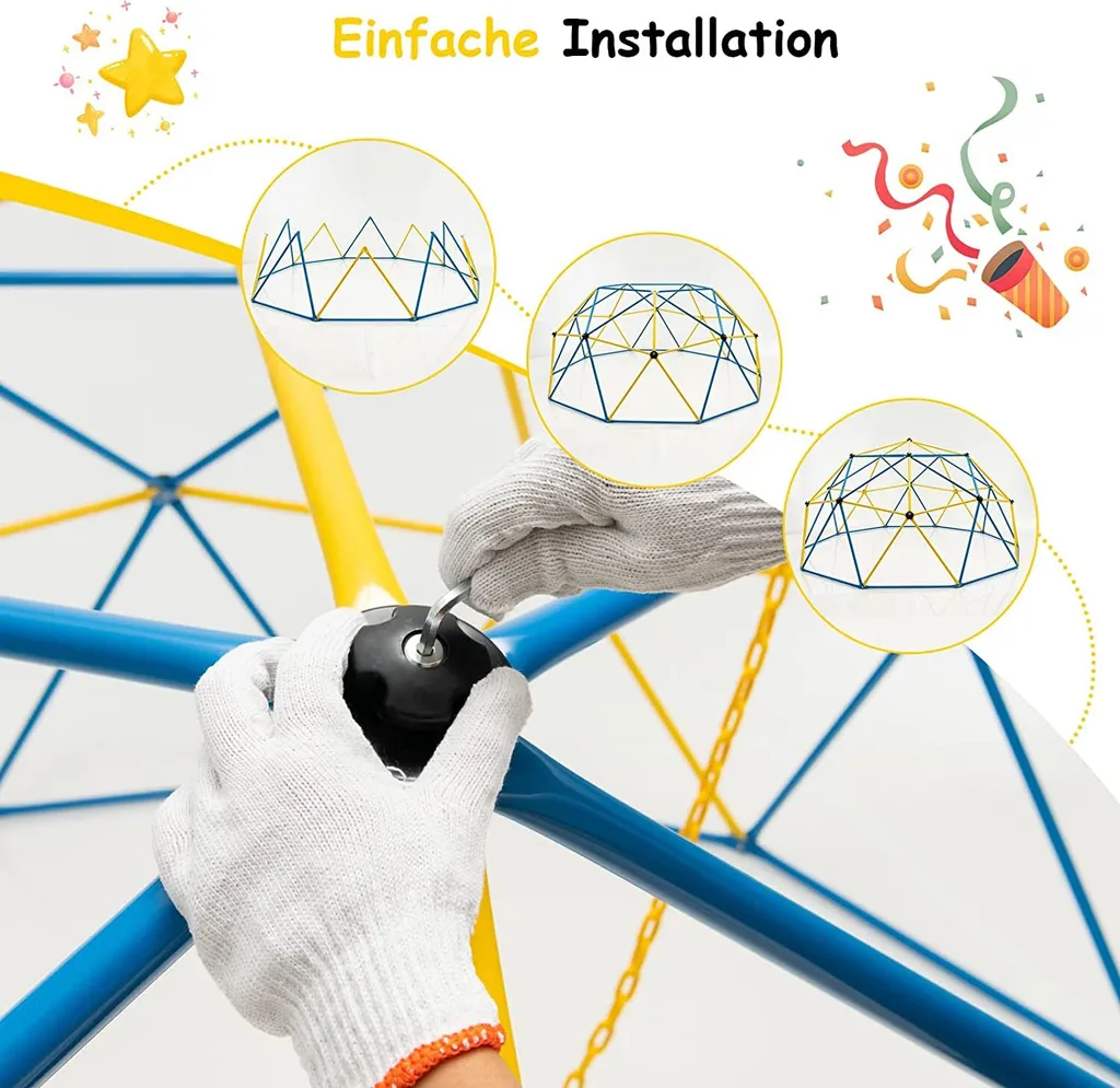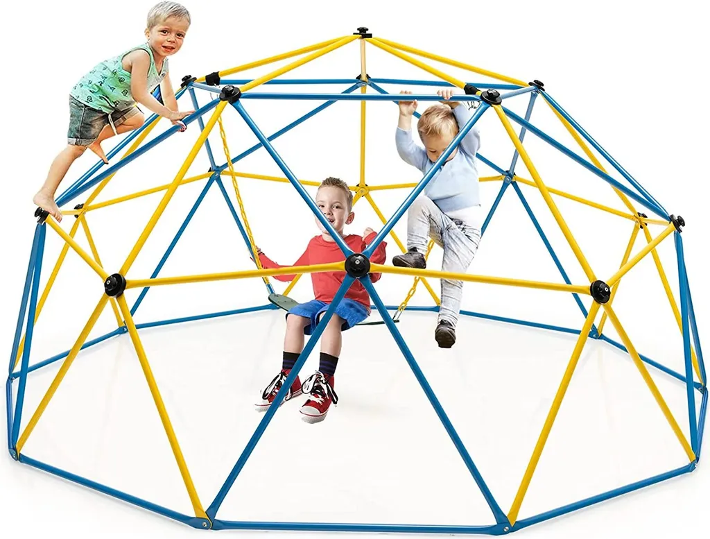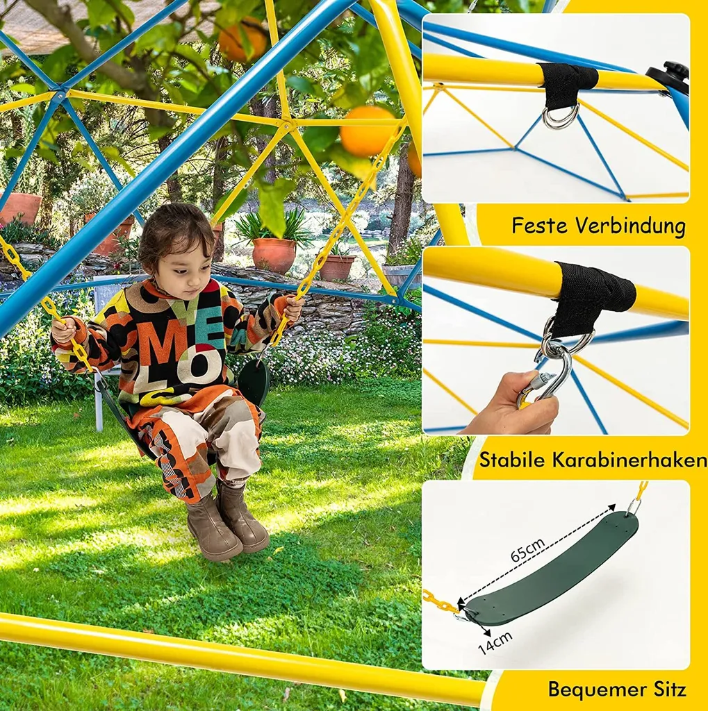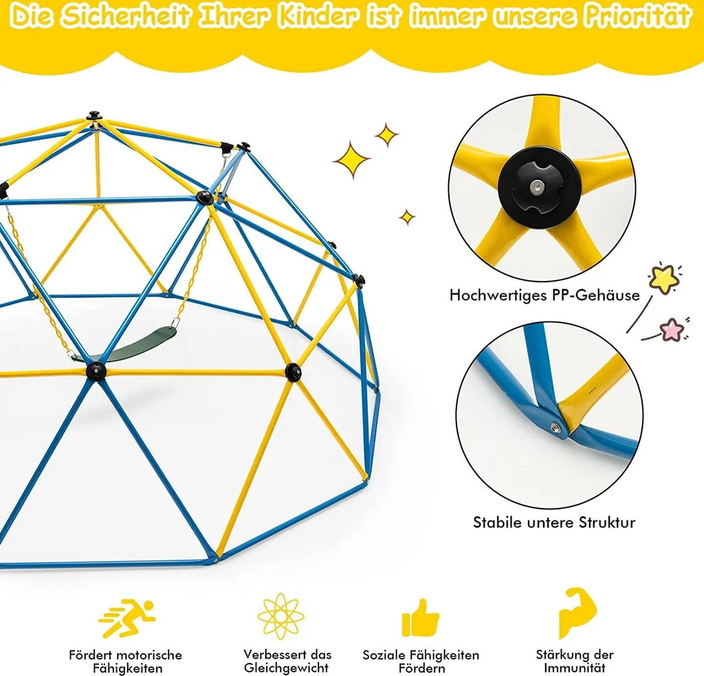 COSTWAY Ø 305cm Kletterkuppel Mit Schaukel, Klettergerüst In Kuppelform, Indoor-/Outdoor-Spielgerät, Kletterleiter Für Kinder Von 3 Bis 10 Jahren, Ideal Für Hinterhof, Garten, 363 Kg Belastbar