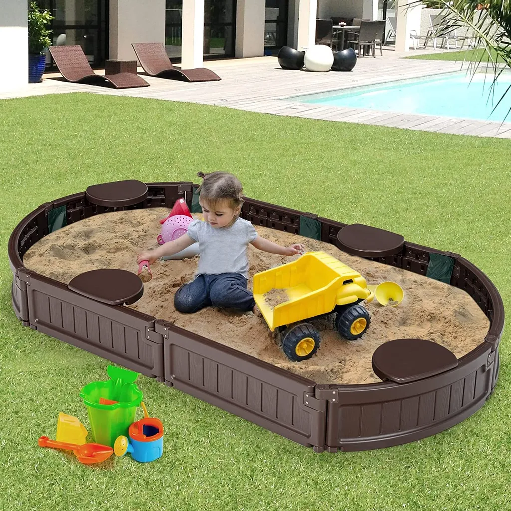 COSTWAY Sandbox Sandkasten Mit Wasserdichter Abdeckung Und Bodenauskleidung, Outdoor Sandkiste Platz Für 4 Kinder 183x105x21cm