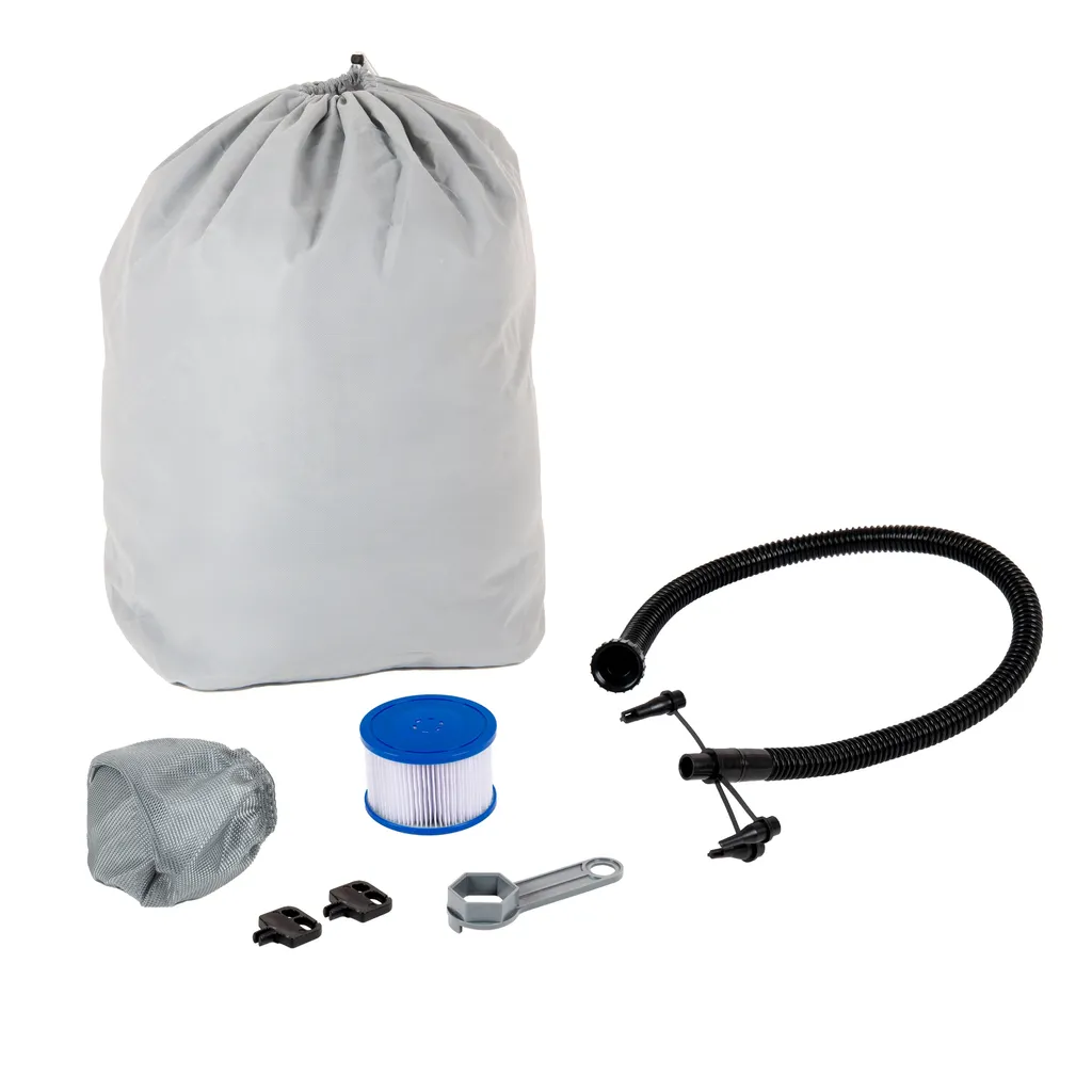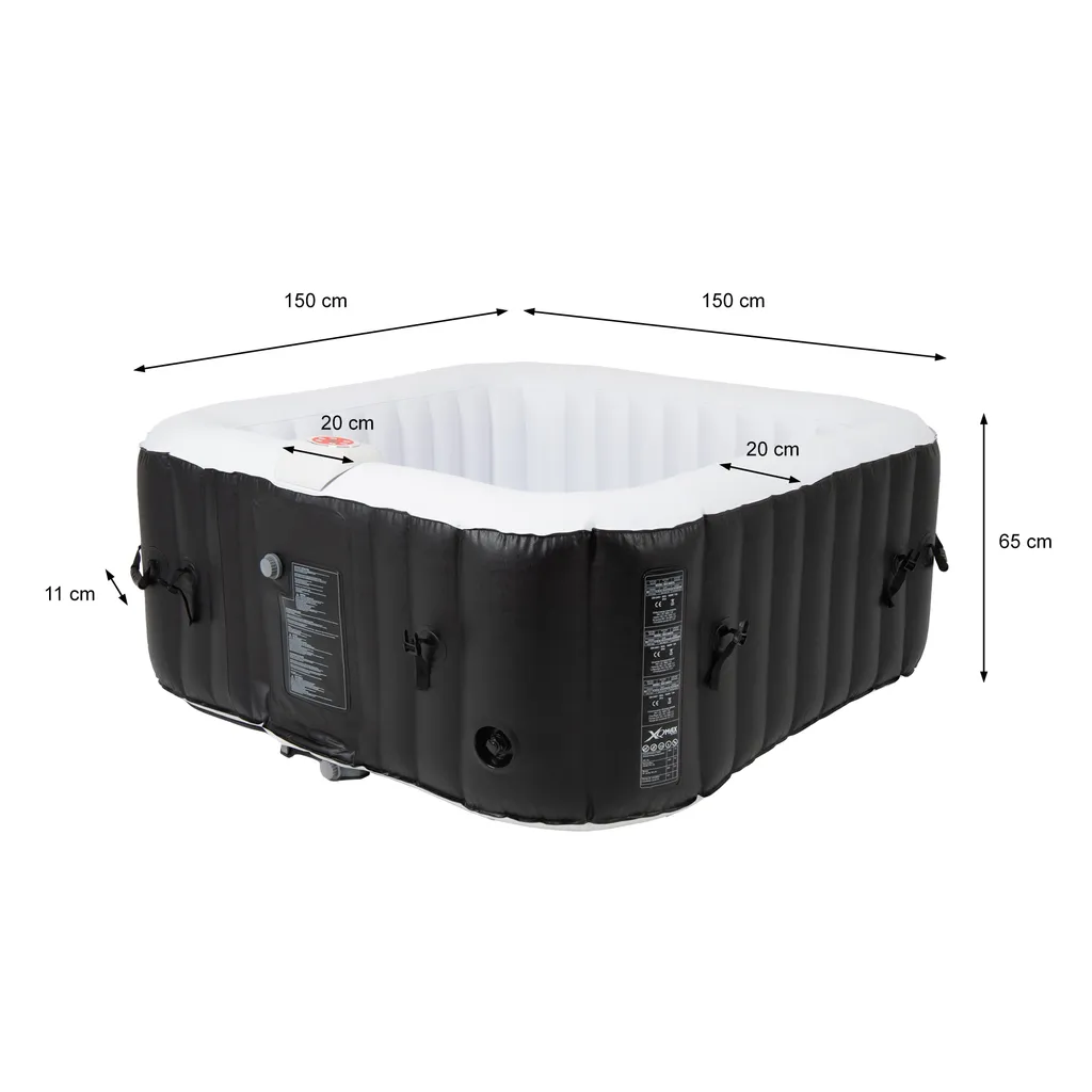 ECD Germany Aufblasbarer Whirlpool In-Outdoor Für 4 Personen, 100 Massagedüsen, LED-Display, 150×150 Cm, 600L, Extra-Zubehör, Seifenblase Jacuzzi Spa Pool Massage Heizung Wellness, Für Garten/Terrasse