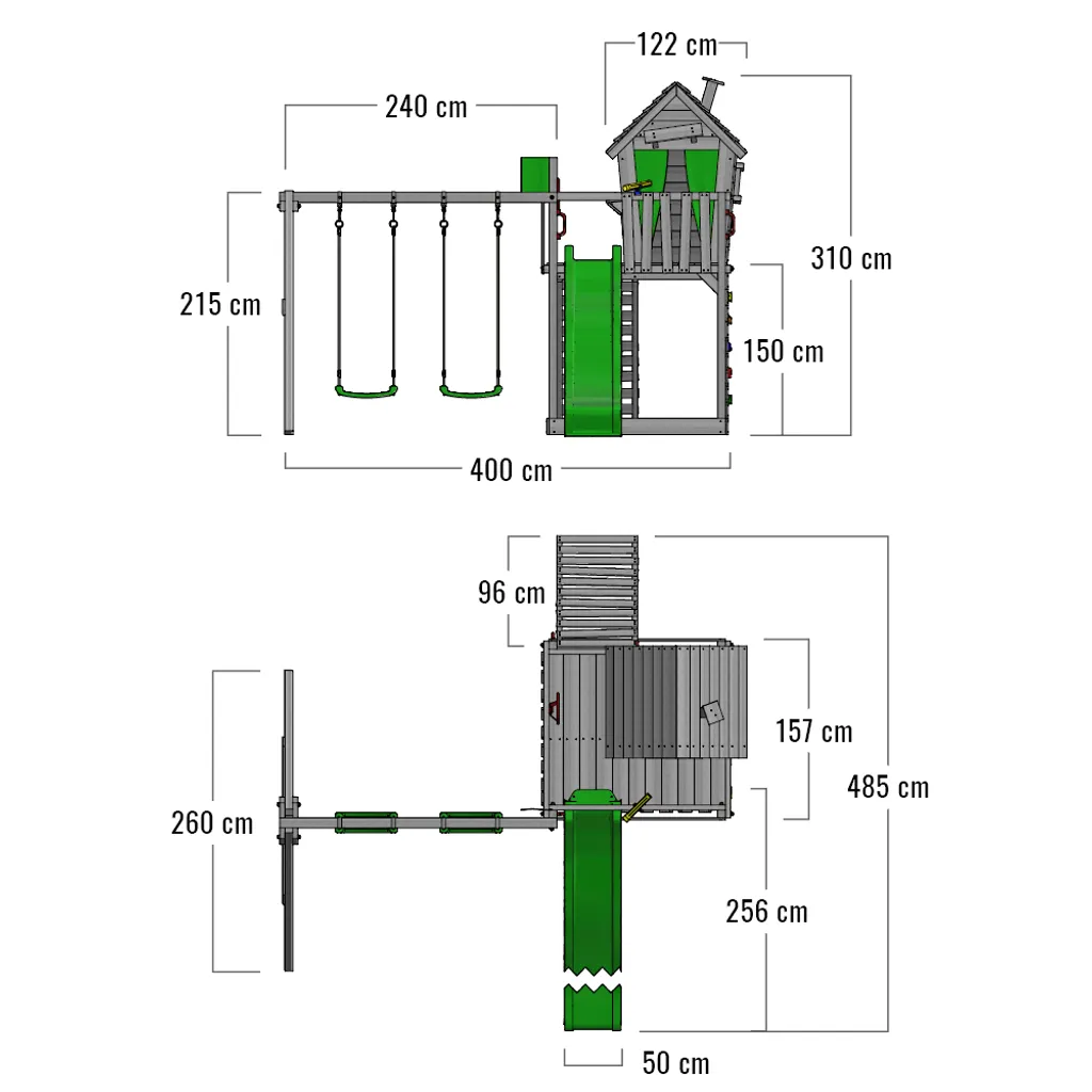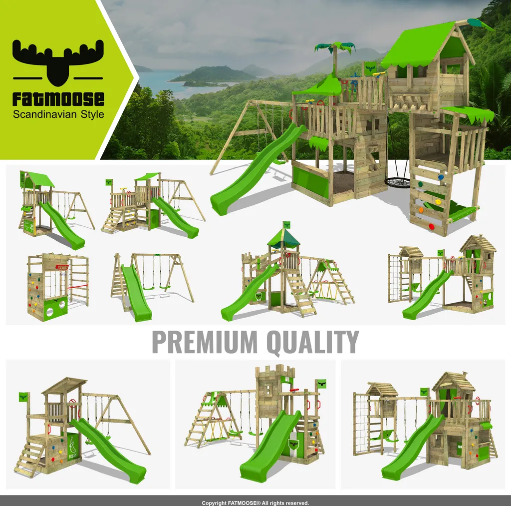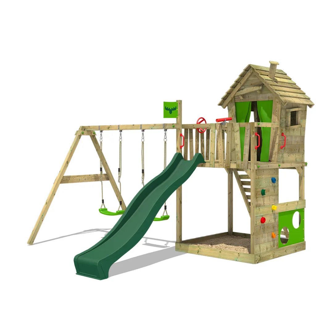 FATMOOSE Spielturm Klettergerüst HappyHome Mit Schaukel & Rutsche, Spielhaus Mit Sandkasten, Leiter & Spiel-Zubehör – Grün