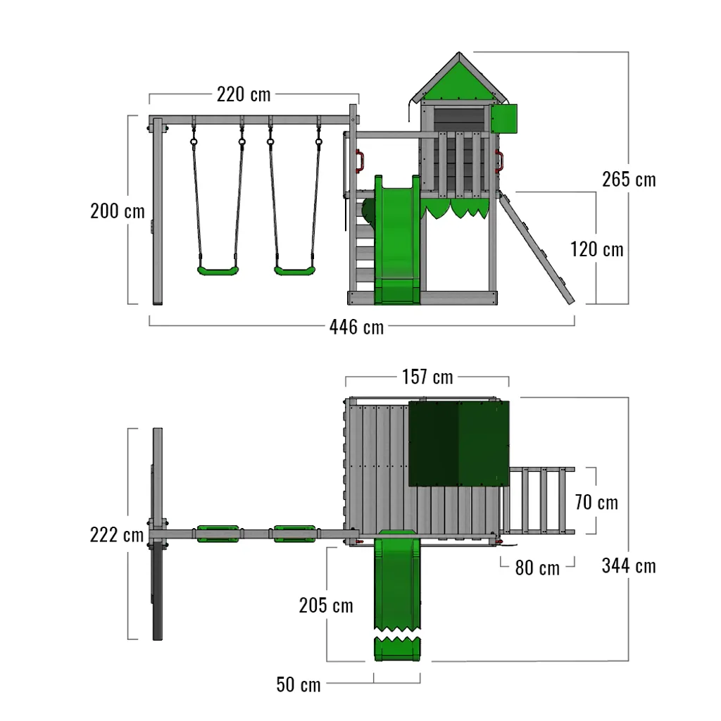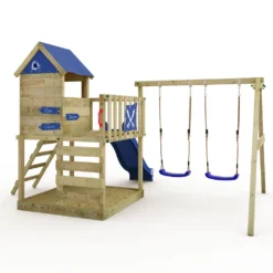 FATMOOSE Spielturm Klettergerüst JazzyJungle Mit Schaukel & Rutsche, Spielhaus Mit Sandkasten, Leiter & Spiel-Zubehör – Grün