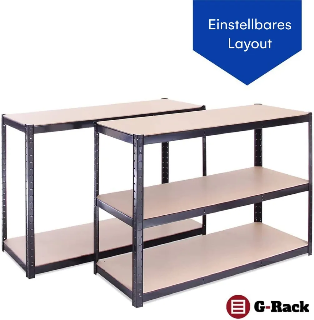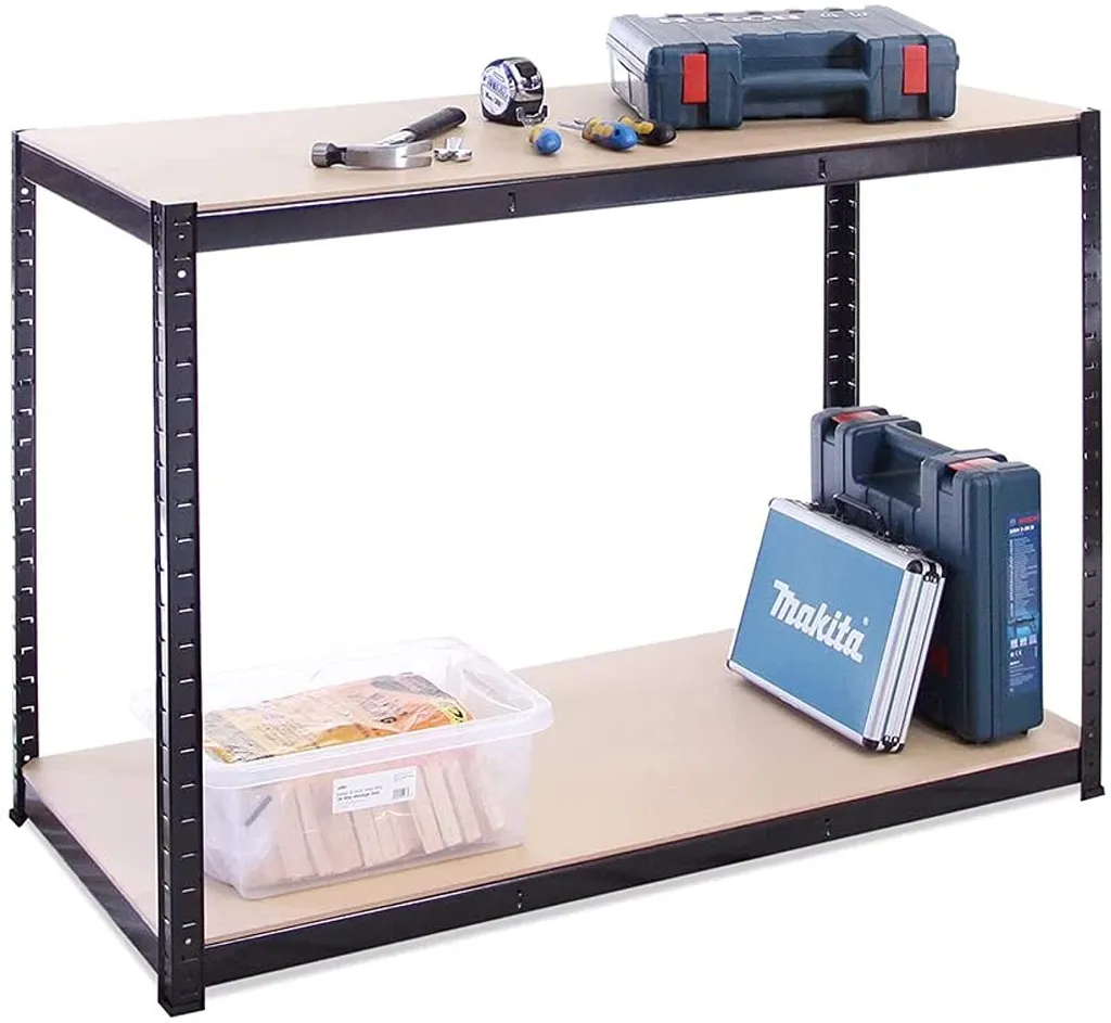 Garage Workbench & Shelving: 90cm High X 120cm Wide X 60cm Deep | Heavy Duty Racking Shelves For Storage, Black 2 Tier (300KG Per Shelf), 600KG Capacity | For Workshop, Shed, Office | 5 Year Warranty