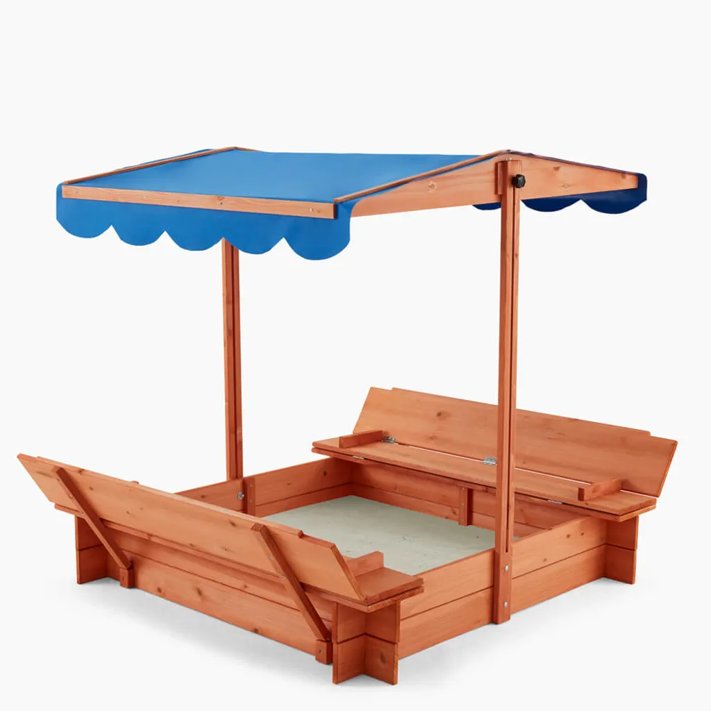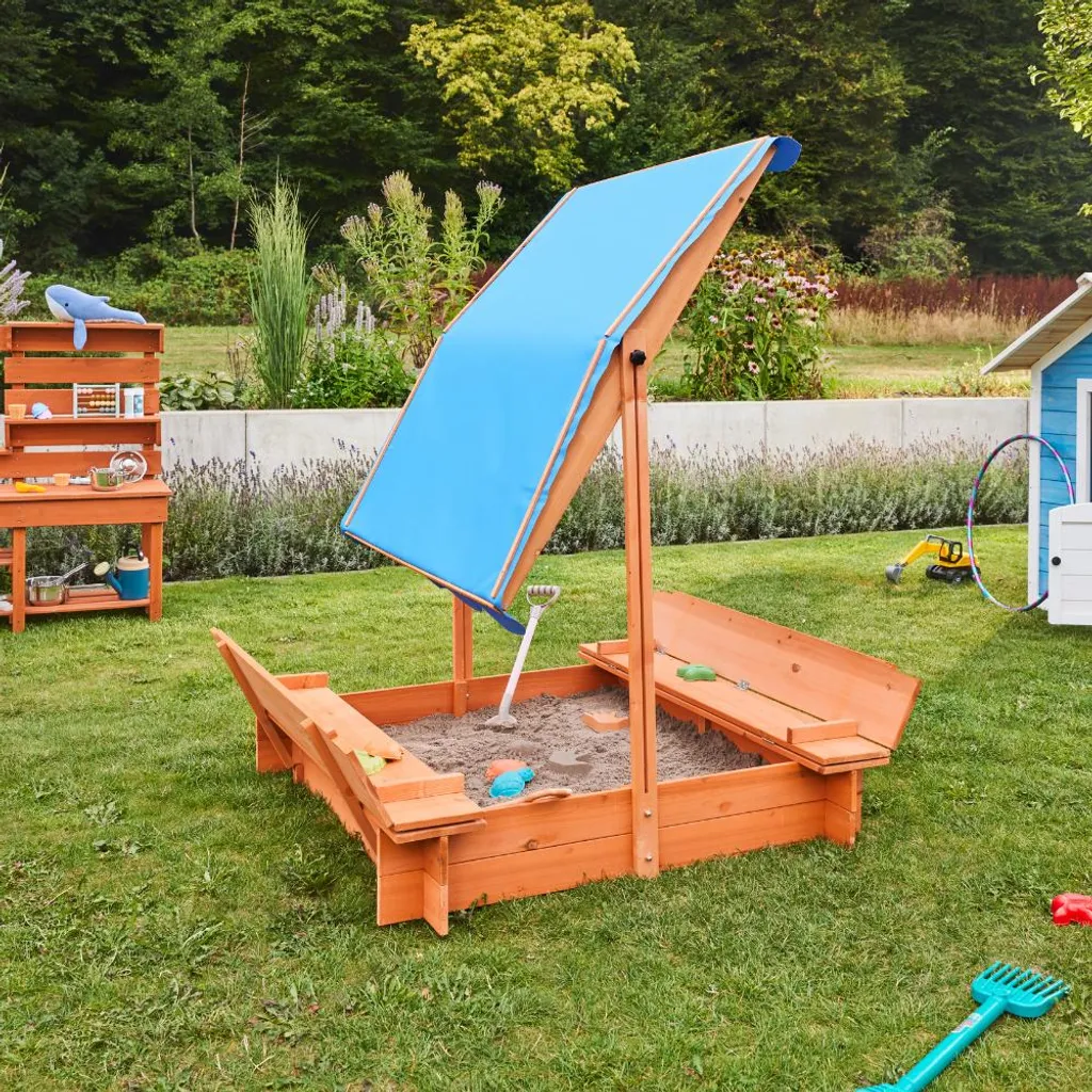 HOME DELUXE – Sandkasten BUDDELKISTE – 110 X 110 X 110 Cm – , Mit Höhenverstellbarem Sonnendach, Mit Umklappbaren Bänken I Sandbox