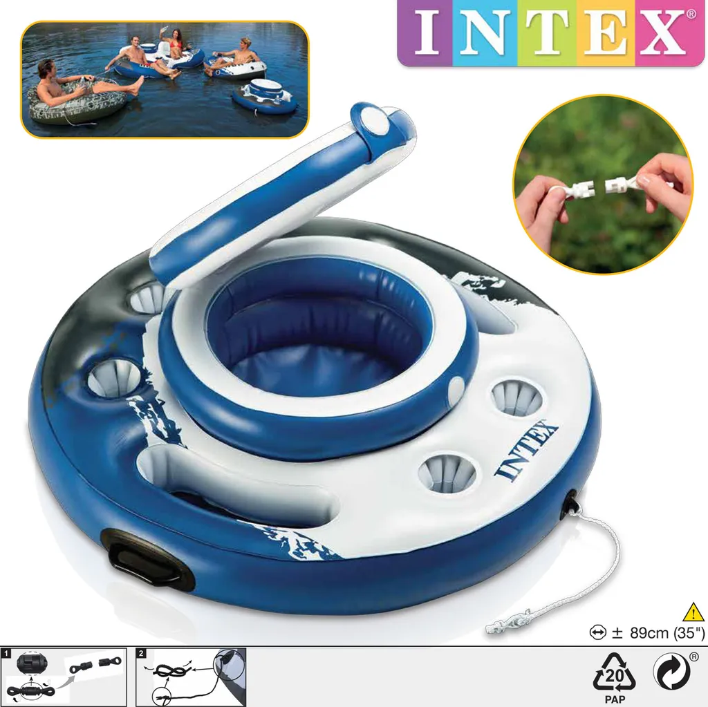 Intex 56822 Poolbar, Megakühler Ø 89 Cm, Getränkekühler, 5 Getränkehalter, Fassungsvermögen 24 Getränkedosen