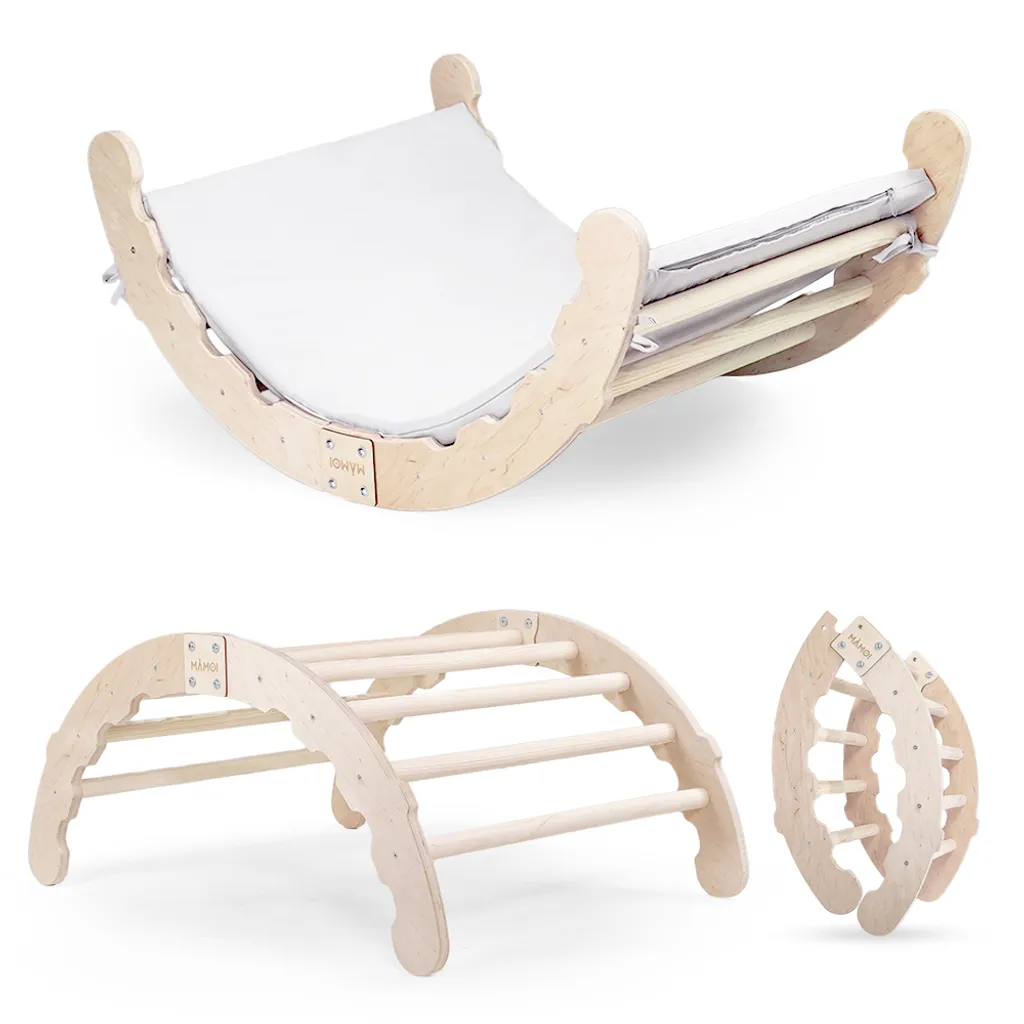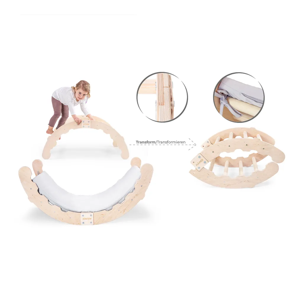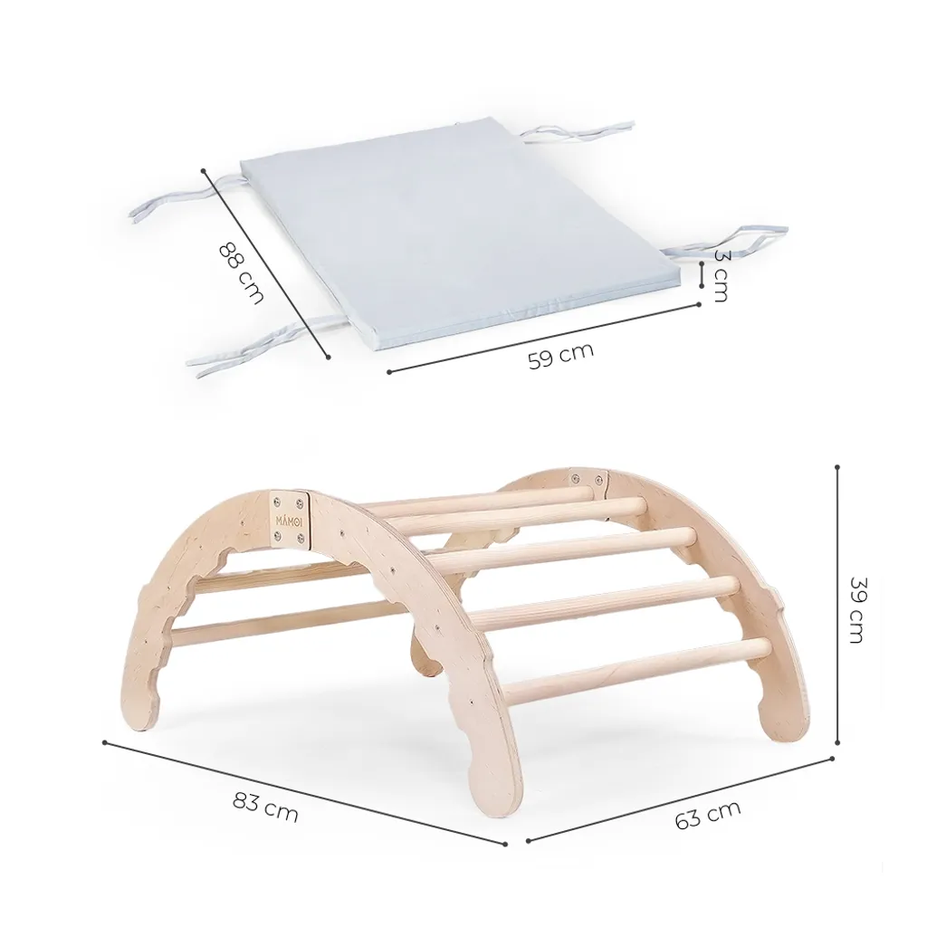 MAMOI® Kletterbogen, Kletterdreieck, Baby Klettern Mit Kissen, Regenbogenwippe Aus Holz, Holzbogen Für Kinder, Klettergerüst Indoor Ab 1/2/3 Jahre