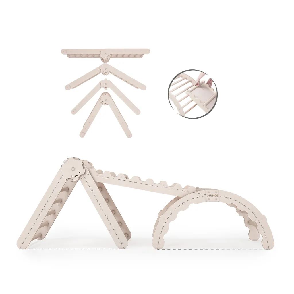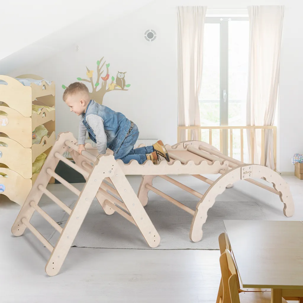 MAMOI® Klettergerüst Indoor, Kletterdreieck Mit Rutsche Aus Holz, Kletterbogen, Baby Kinder Klettern, Regenbogenwippe Mit Rutschbrett, Holzbogen Triangle Für Spielplatz Ab 1/2/3 Jahre