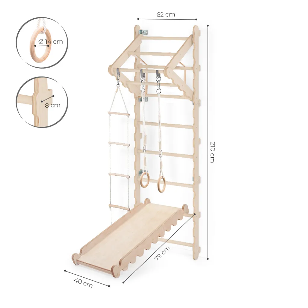 MAMOI® Klettergerüst Indoor, Sprossenwand Für Kinderzimmer Mit Rutsche, Turnringe Kinder Für Klettern, Kletterwand Und Spielgeräte, Turngeräte Mit Klimmzugstange Für Drinnen, Sportgeräte Ab 3 Jahren