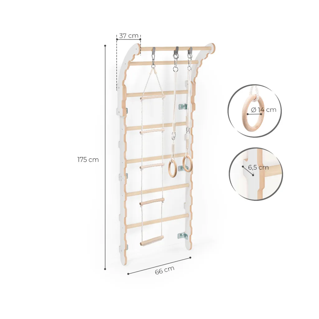 MAMOI® Klettergerüst Indoor, Sprossenwand Für Kinderzimmer, Turnringe Kinder Für Klettern, Kletterwand Und Spielgeräte, Midi Turngeräte Mit Klimmzugstange Für Drinnen, Sportgeräte Ab 3 Jahren