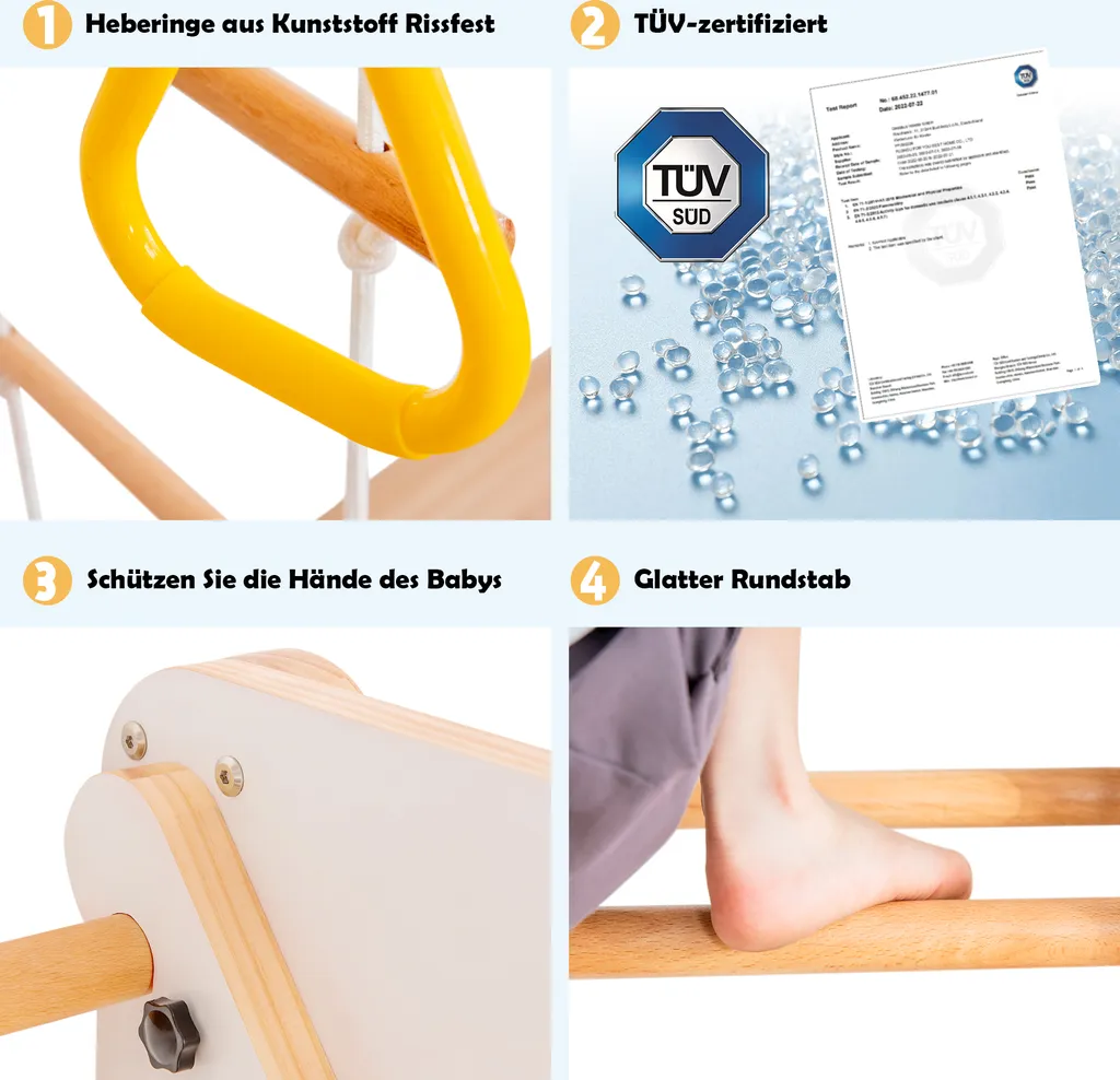 Merax 6-in-1 Multifunktions Kletterspielzeug Set Inkl. Rutsche Schaukel Klettergerüst Klimmzugsbereich Ringe Jungle Gym-Set, Indoor KlettergerüstSprossenwand Für Kinder, Massivholz, Natur