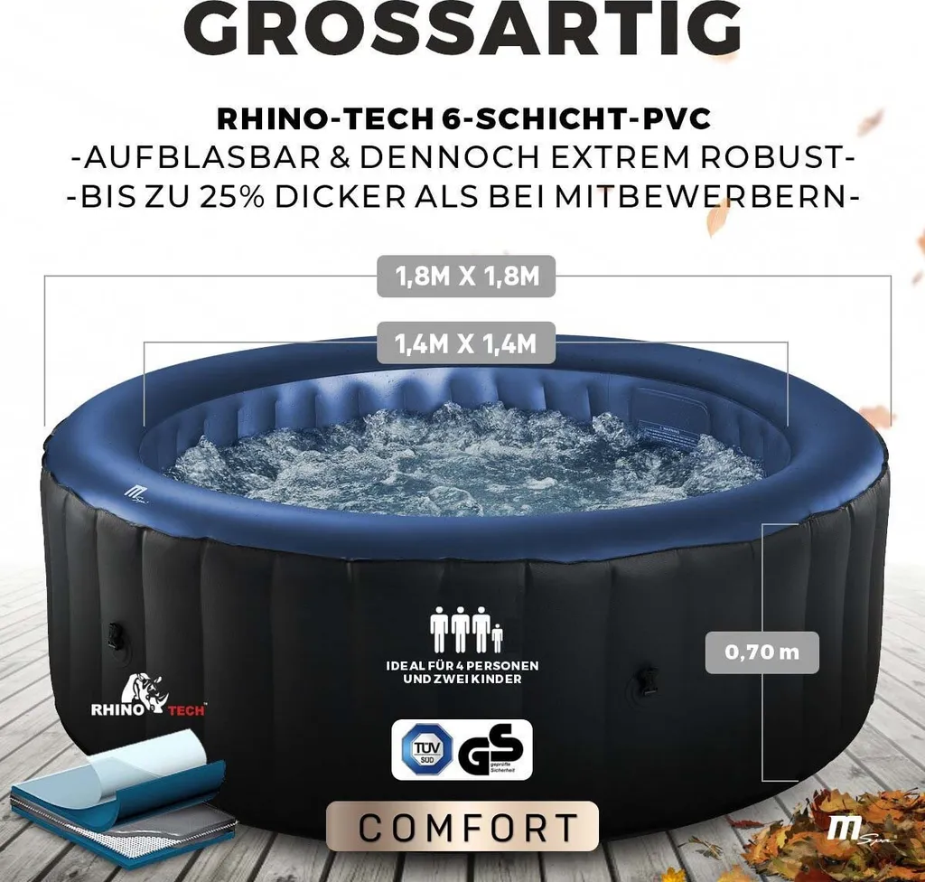 Miweba MSpa Whirlpool Comfort Bergen C-BE041 – Indoor & Outdoor-Whirlpool (Anthrazit/Blau) – Aufblasbar – 4 Personen – UV-C Filter – Anti-Frost-System – Verschließbare Poolabdeckung