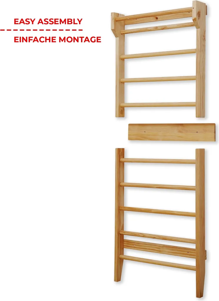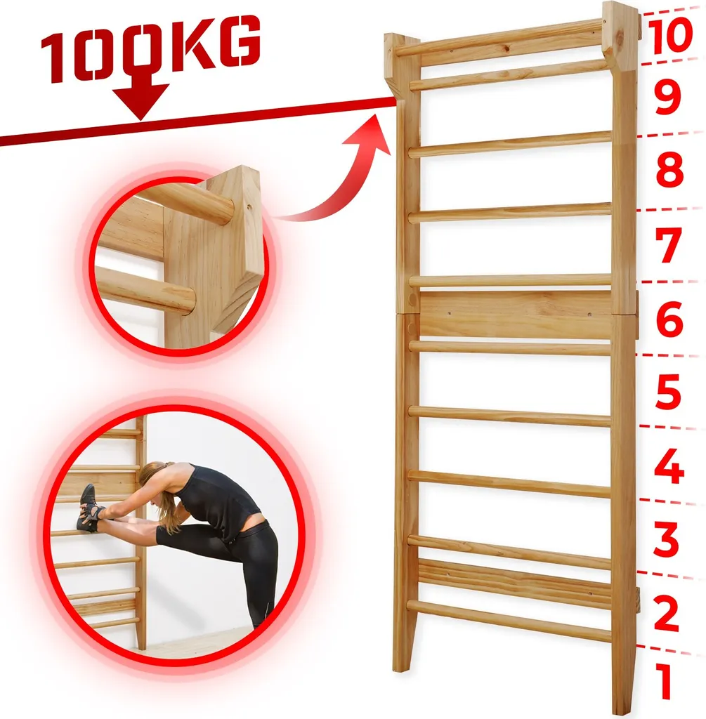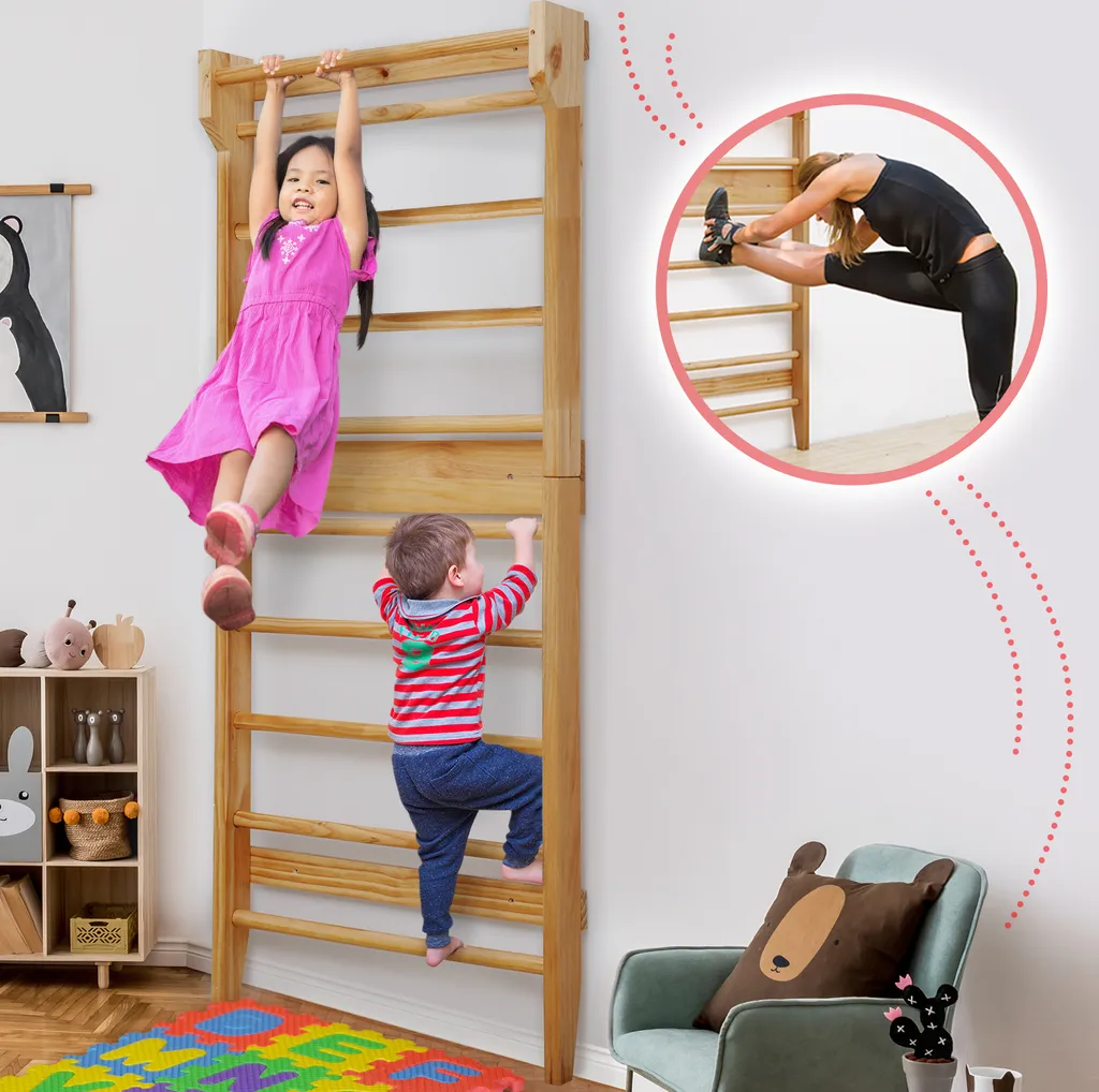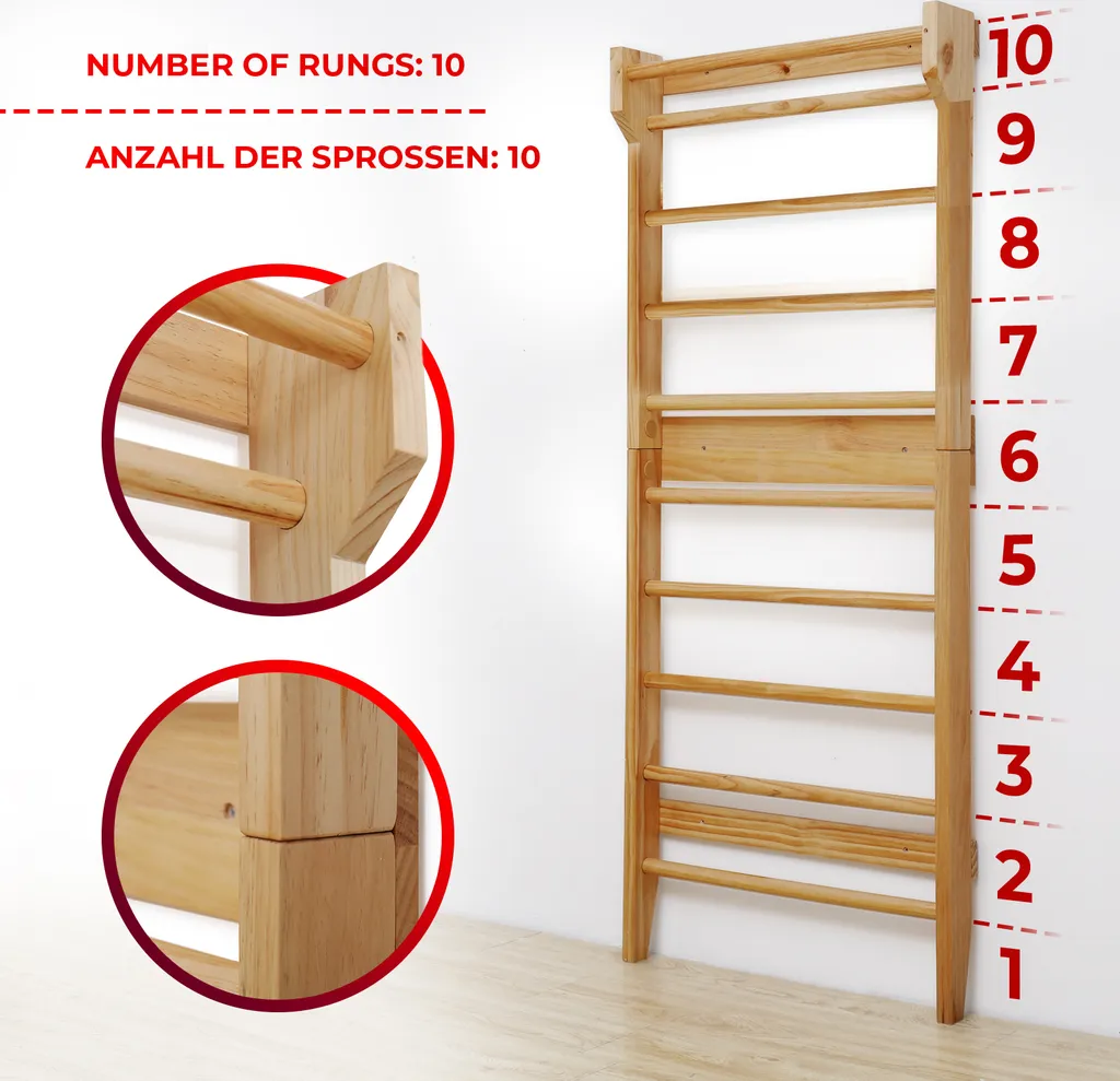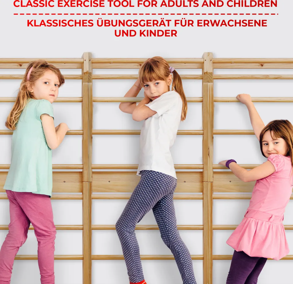 Physionics® Sprossenwand Aus Holz – Für Kinder Und Erwachsene, 195x80x14cm,100kg Max- Kletterwand, Turnwand, Klettergerüst