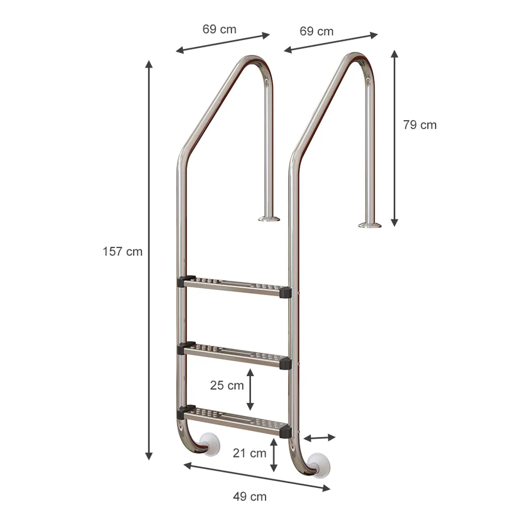 Poolleiter Einbauleiter 3 Stufen Schwimmbadleiter V2A Edelstahl Pool Einstieg