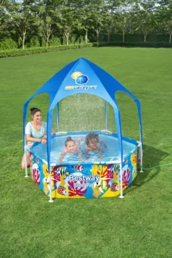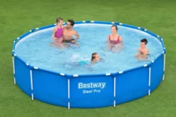 Bestway® Steel Pro MAX™ Frame Pool Set Mit Filterpumpe + Verdeck Ø 366 X 122 Cm, Lichtgrau, Rund