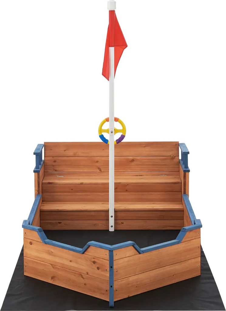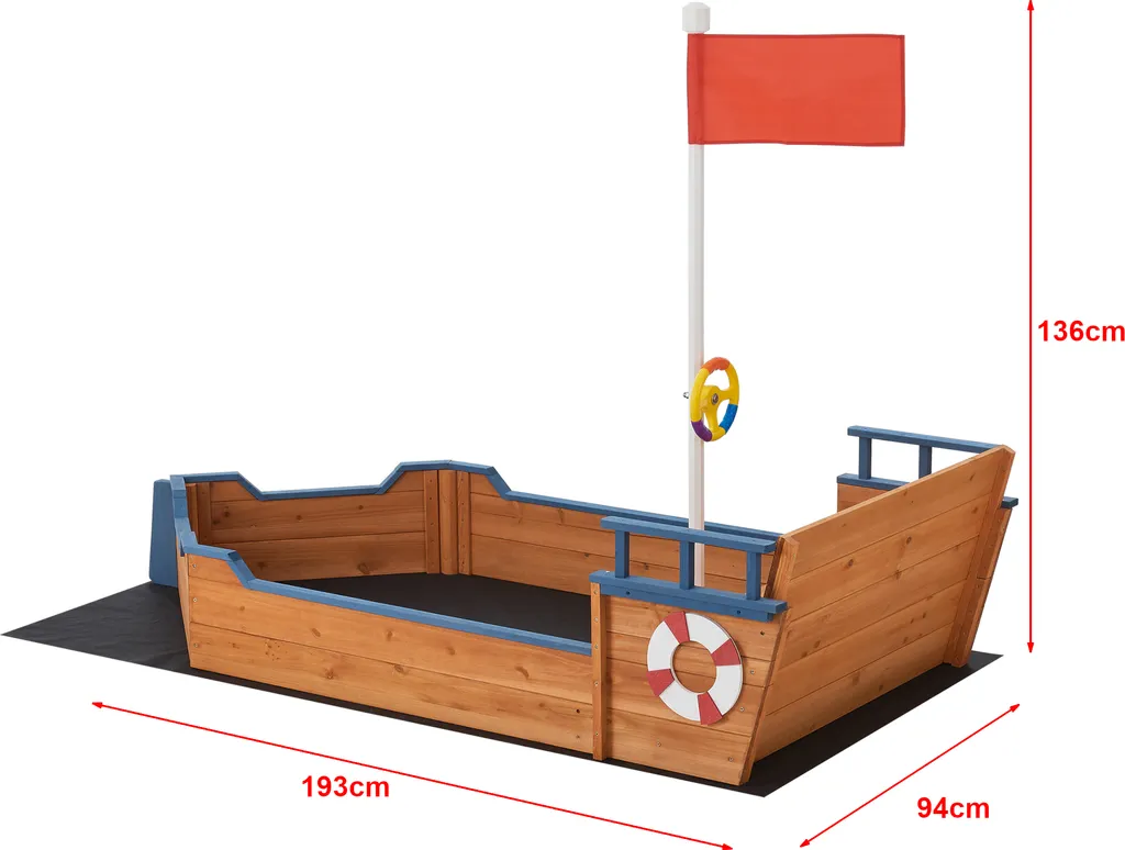 Sandkasten Mestia Mit Piratenschiffoptik 136 X 193 X 94 Cm Holzsandkasten Sandkiste Sandbox Mit Aufklappbarer Sitzbank Holz Natur