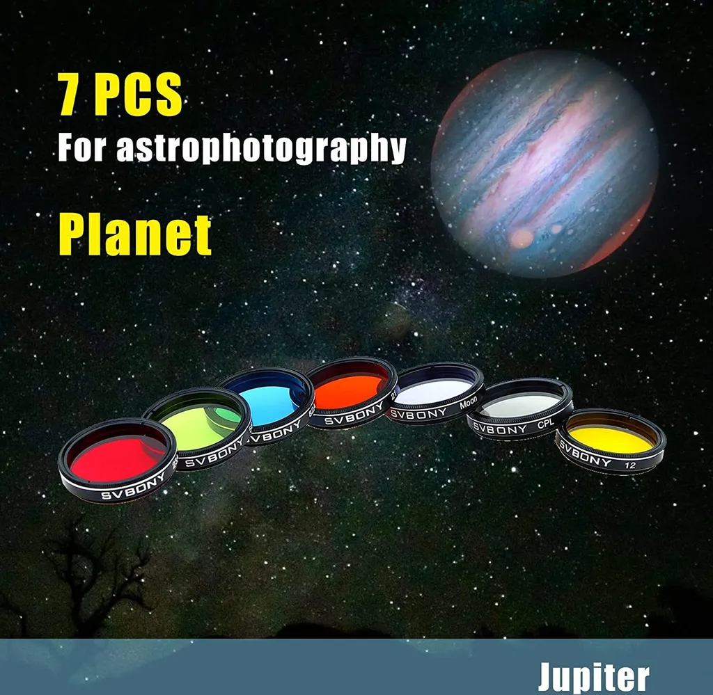 Svbony Filter Set 1.25 Zoll, 7 Stück Okular Filter Set, Mondfilter CPL-Filter Fünf Farbfilter Für Bunten Planet Und Mondbeobachtung, Moon Filter (7PCS)