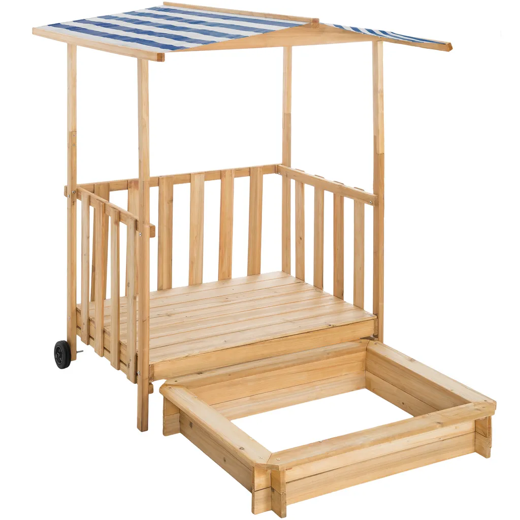 Tectake Sandkasten Und Spielveranda Mit Dach 106x105x137cm – Blau