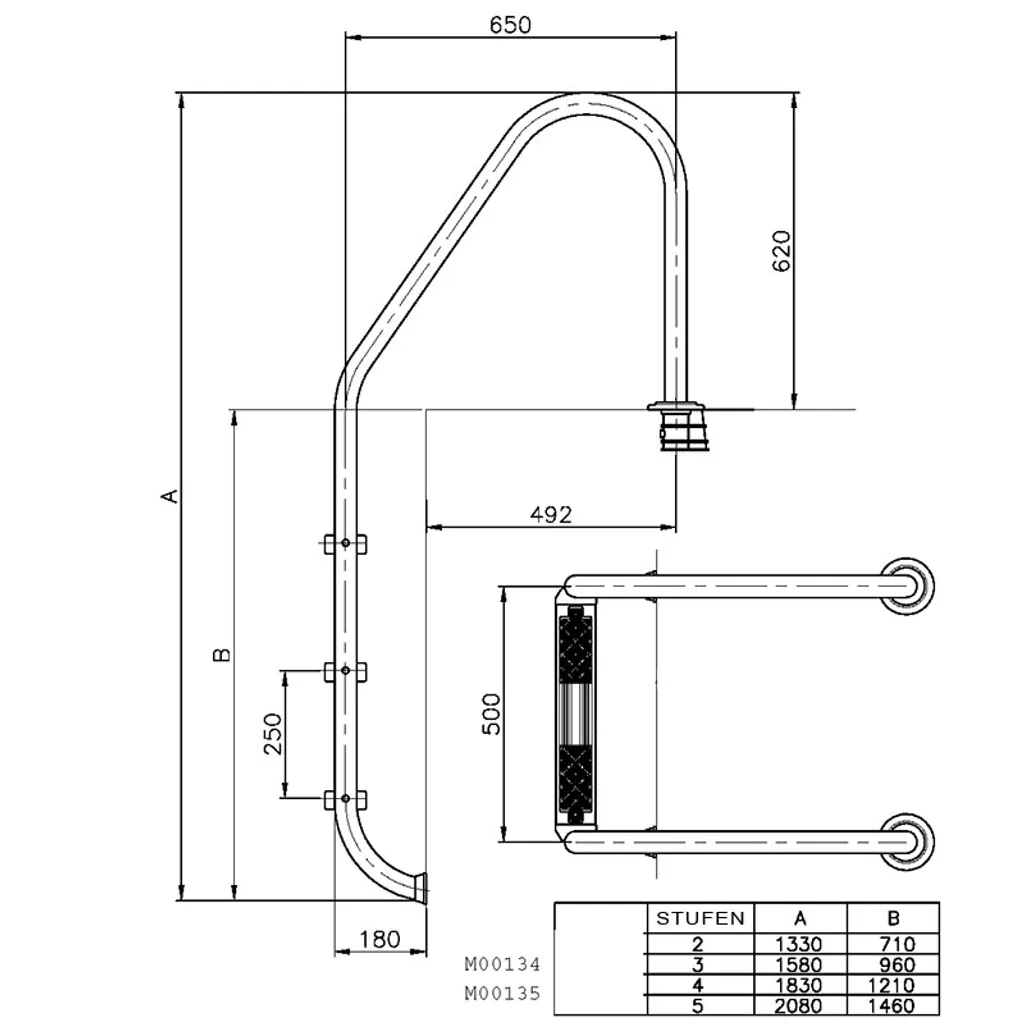Tiefbeckenleiter 3 Stufen – WEIT, Edelstahl V2A