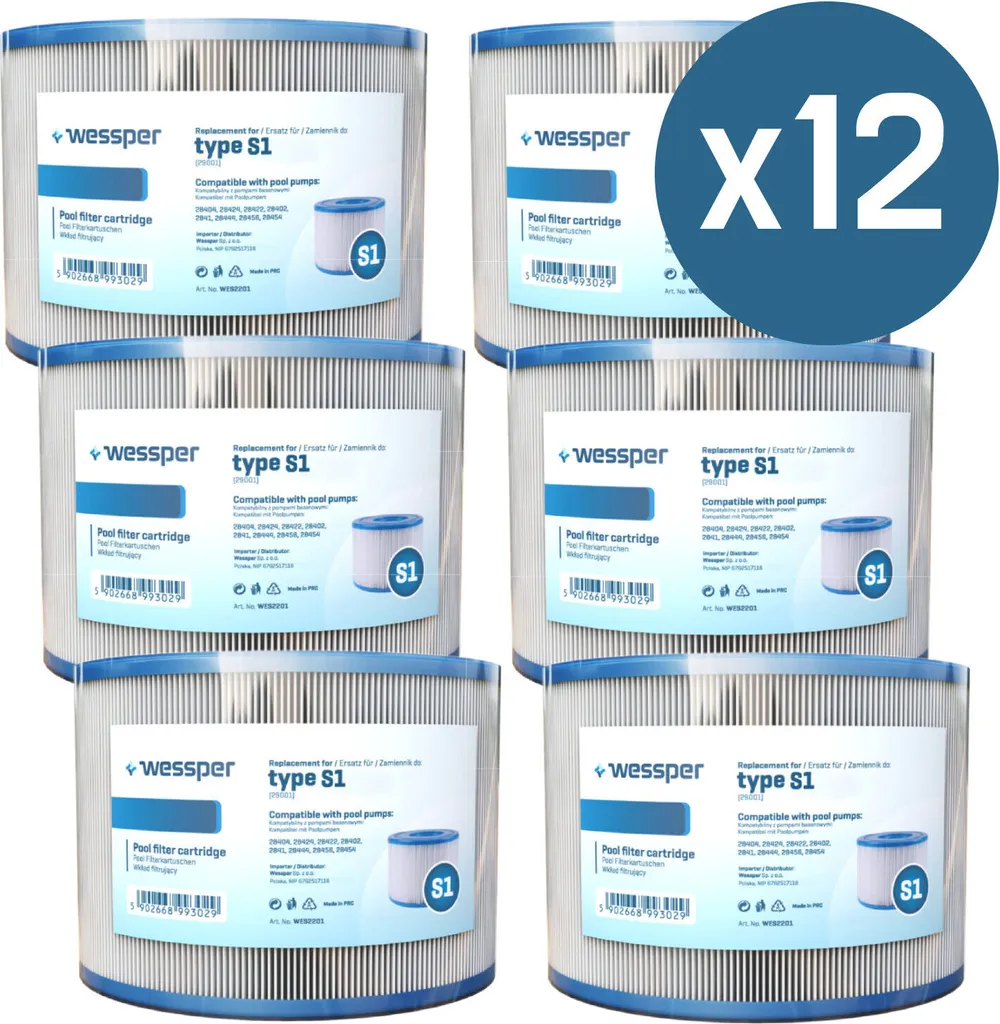 Wessper S1 Filter Ersatz-Kartuschen Für Intex, Filterkartusche Typ S1, Kartuschen Für Whirlpool-Filter – S1 Filter, Schwimmbadfilter Für Garten Outdoor Für Intex 29002, 12 Stück