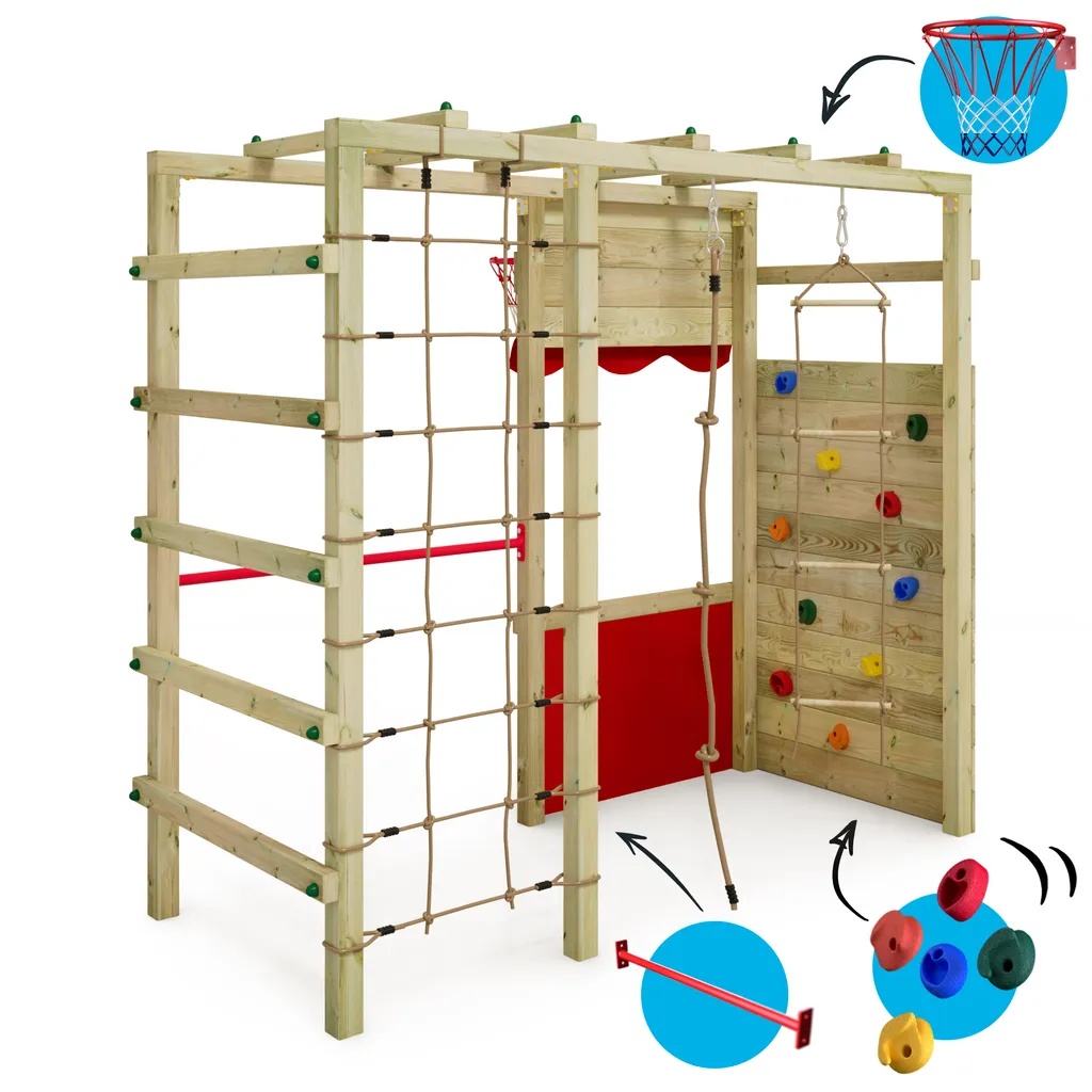 WICKEY Klettergerüst Spielturm Smart Action Gartenspielgerät Mit Kletterwand & Spiel-Zubehör – Rot