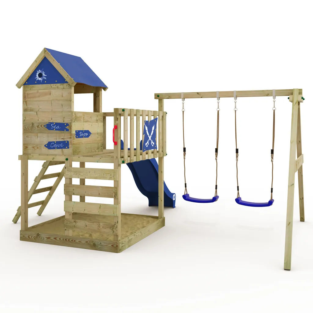 WICKEY Spielturm Klettergerüst Smart Cave Mit Schaukel & Rutsche, Baumhaus Mit Sandkasten, Kletterleiter & Spiel-Zubehör – Blau