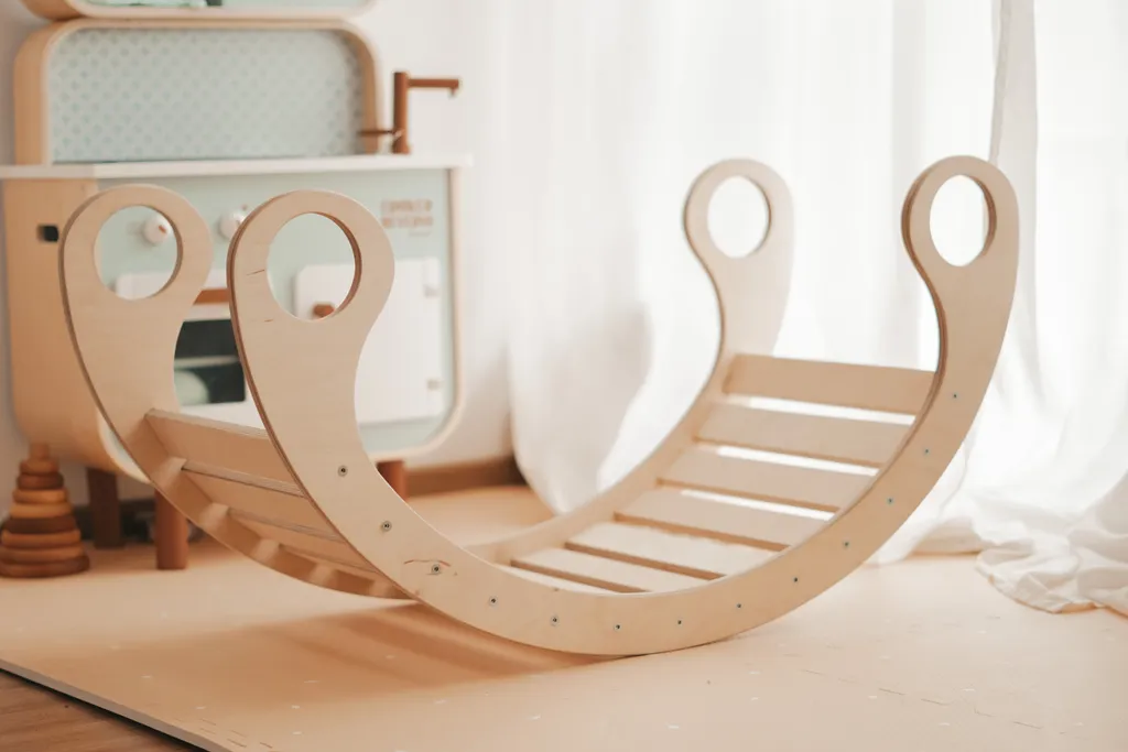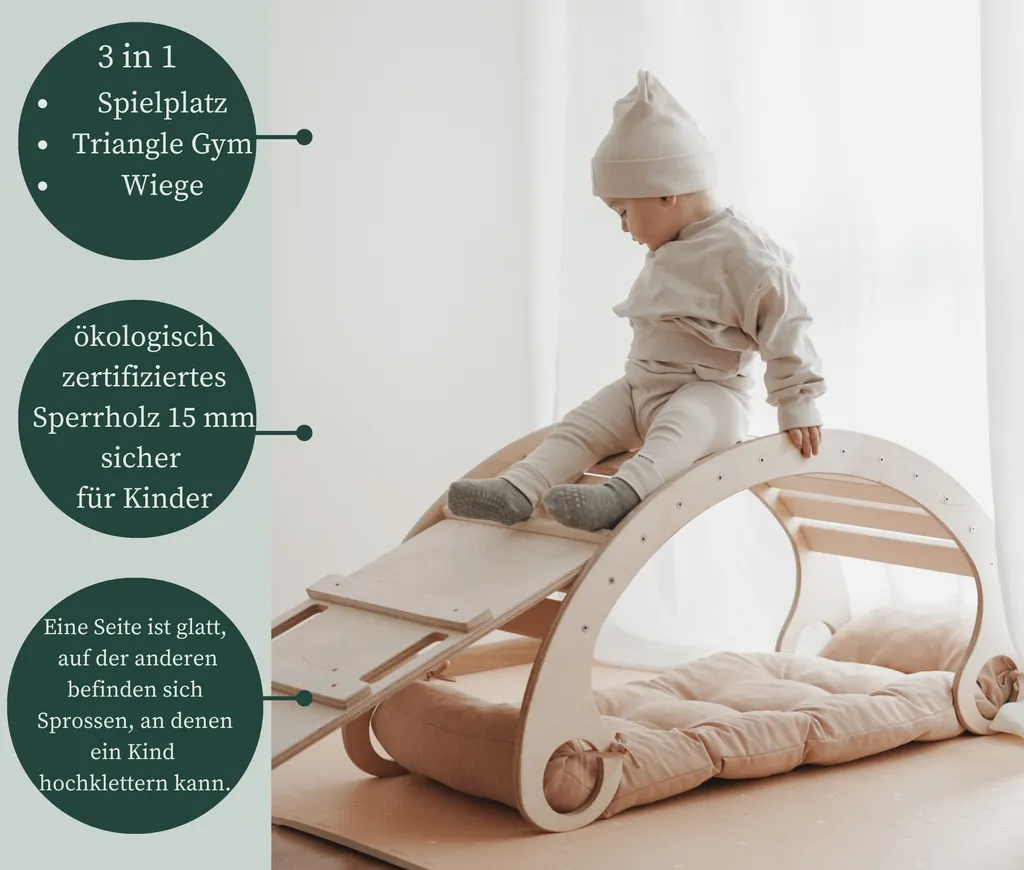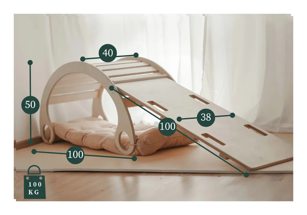 XXL Kletterbogen Mit Rutsche Und Kletterbrett – Indoor Bogenwippe Klettergerüst Für Kinder I Handgemachtes Kletterdreieck Und Montessori Schaukel I Wippe 100x40x50